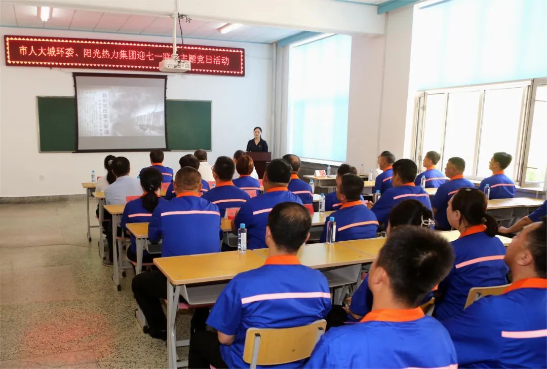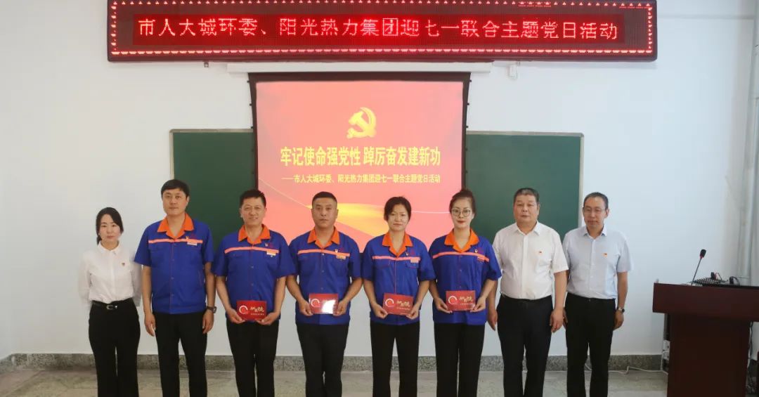 6月28日上午,市人大城環(huán)委聯(lián)合陽(yáng)光熱力集團(tuán),在市委組織部黨建活動(dòng)基地開(kāi)展迎七一主題黨日活動(dòng),重溫黨的光輝歷程,弘揚(yáng)偉大建黨精神。市人大城環(huán)委主任委員王文峰及市人大城環(huán)委委員,陽(yáng)光熱力集團(tuán)董事局主席、總裁宋佳鑫及陽(yáng)光熱力集團(tuán)黨委委員、各子公司黨支部委員和黨員骨干代表共計(jì)50余人參加活動(dòng)。
