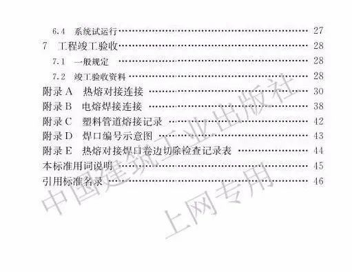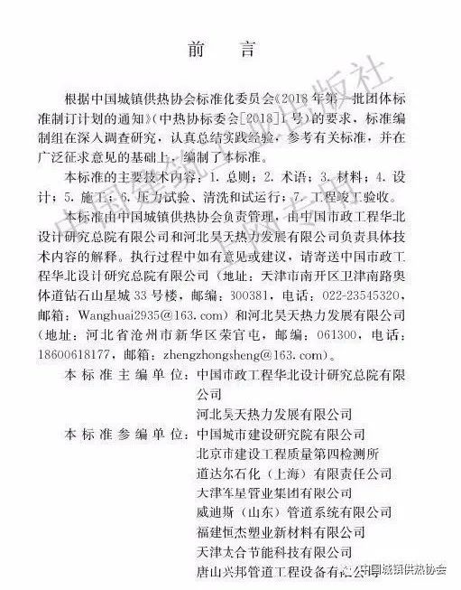 標(biāo)準(zhǔn)內(nèi)容:標(biāo)準(zhǔn)適用于設(shè)計(jì)壓力不大于1.0MPa、設(shè)計(jì)溫度不大于75℃、工作管外徑不大于450mm的城鎮(zhèn)供熱直埋保溫塑料管道和鋼塑復(fù)合管道的設(shè)計(jì)、施工與驗(yàn)收。