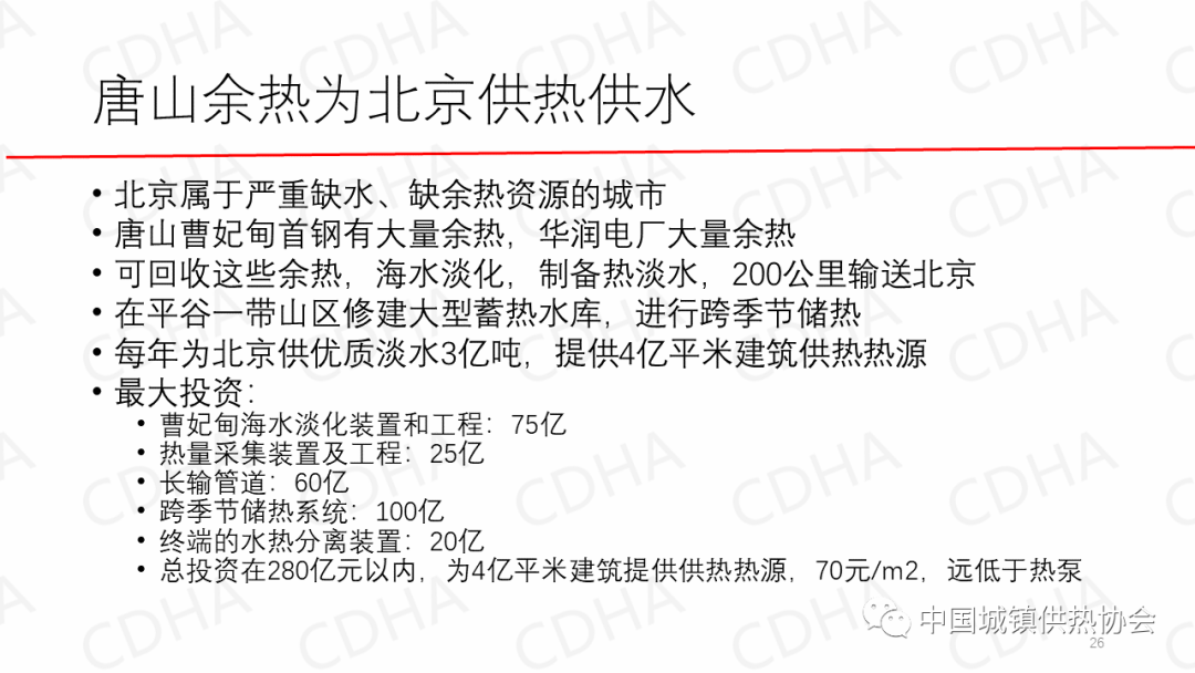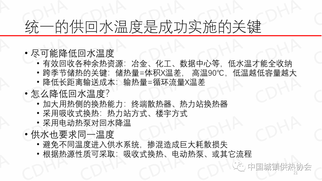 但是如果你把回水溫度降下來,實際就可以更多的從原有熱源上提取余熱,電廠把人家的熱就都收回了,還可以試圖收一些工業(yè)余熱,所以通過降低回水溫度來解決熱量需求的不斷增長問題,而不再建這燃煤鍋爐,這是這幾年的主要任務(wù)。