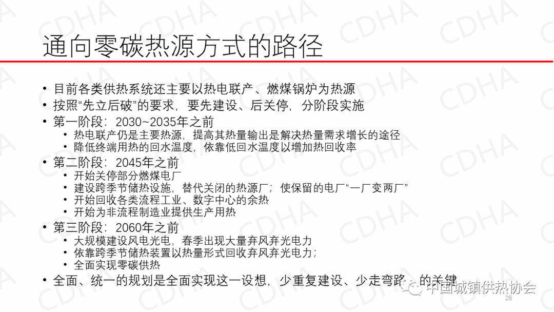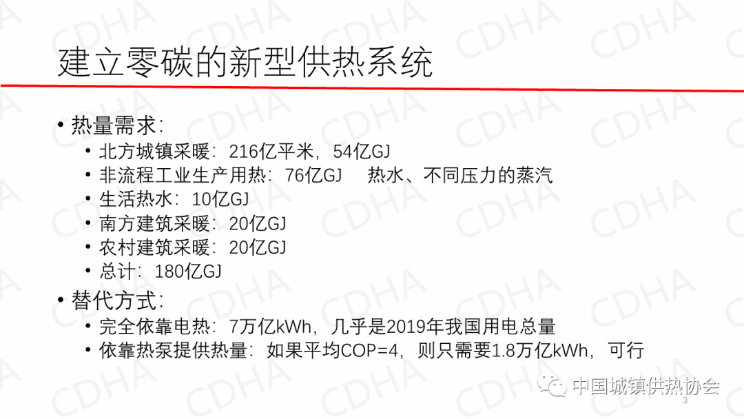 這個美好前景說完了,就是這個時間上它有一個合適的點。現(xiàn)在目前還是以熱電聯(lián)產(chǎn)+燃煤鍋爐+燃?xì)忮仩t為主要熱源。中央也提出來先立后破,能源革命能源化轉(zhuǎn)型,不能影響民生,不能影響工業(yè)生產(chǎn)、經(jīng)濟(jì)發(fā)展、社會發(fā)展,所以這需要一個合適的步驟,一步一步來,這點特別重要。