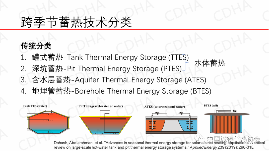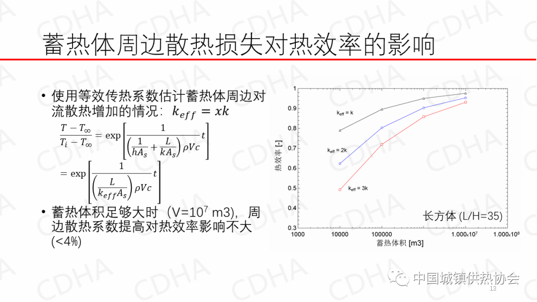 所以這幾種做法最后比起來還是大的一個深坑的最好,因為抓的是兩件事兒,一個是熱量不能丟,一個是品位盡可能不能丟,這樣儲熱是上面是熱水,底部是涼水,進(jìn)的時候(上面)進(jìn)熱的,涼的從底下出去,取的時候是上面出來熱水,涼水補到里邊去,要的是中間一個冷熱分層,那個(斜溫層)變化是(上下)來回變的,(熱水涼水分層)不能摻和。所以得通過各種辦法補水的氣壓,緩慢的取水裝置等等,這就能夠特別好的解決里邊的問題,總的結(jié)果就是效率很高。