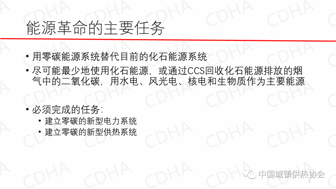 江院士表示:能源革命的主要任務(wù)是用零碳能源系統(tǒng)替代目前的化石能源系統(tǒng)。應(yīng)盡可能少地使用化石能源,或通過CCS回收化石能源排放的煙氣中的二氧化碳,用水電、風(fēng)光電、核電和生物質(zhì)作為主要能源。對供熱行業(yè)來講,建立零碳的新型電力系統(tǒng)、新型供熱系統(tǒng)是兩個重點任務(wù)。