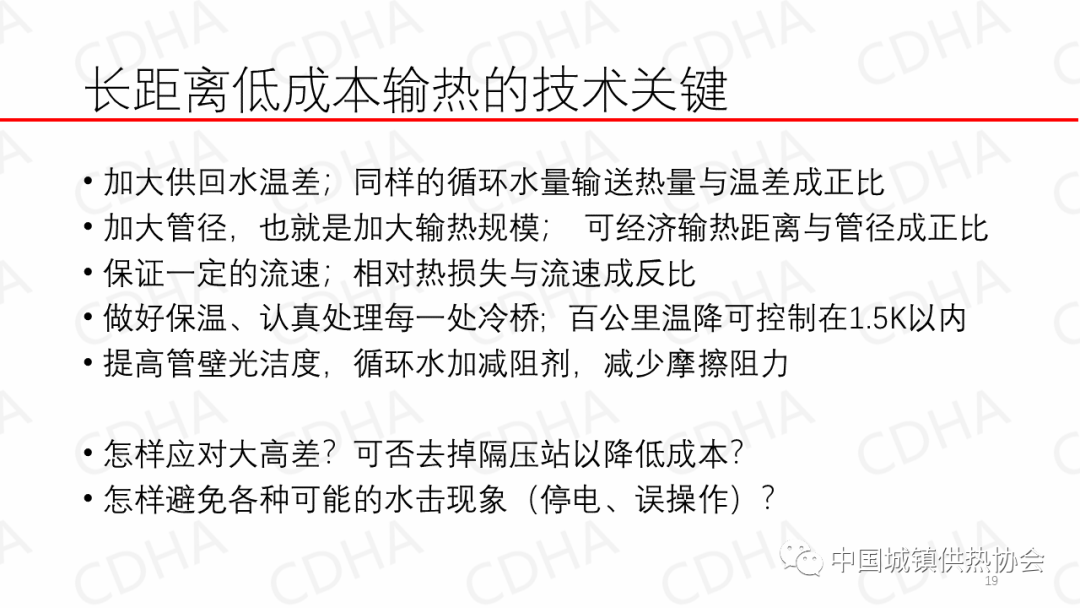 長距離輸送要加大溫差,所以從三個方面都希望使勁把回收成本降低,這就成了我們這行的一個重點任務(wù),供熱的回收溫度降低,(即使)工業(yè)生產(chǎn)用熱,我提供這個(熱)也得想法把回水溫度降低。