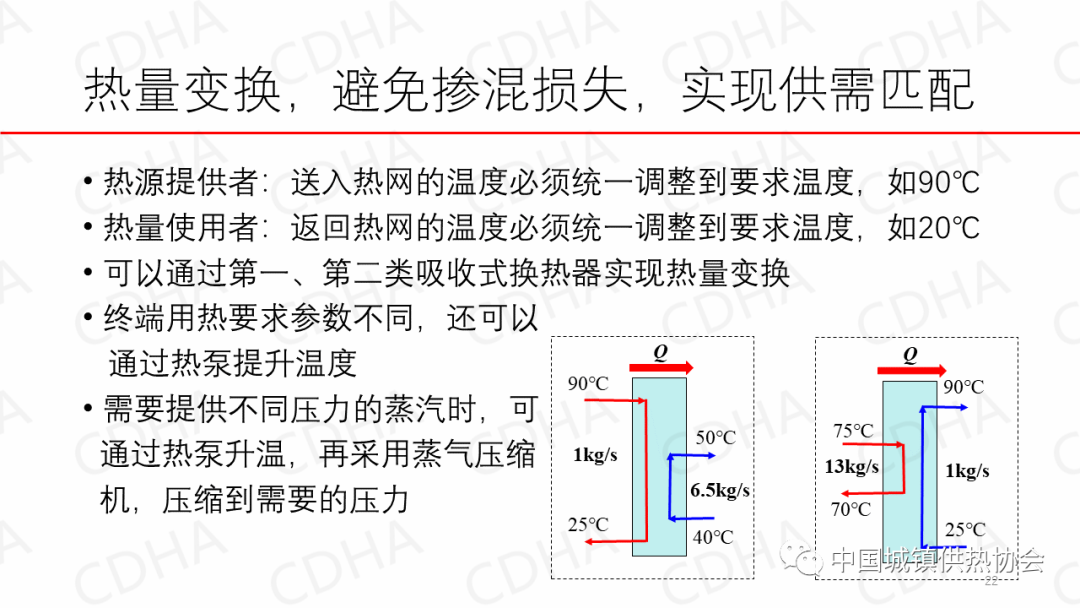 第二是地理位置不一致,所以還得輸送時能(夠)低成本。第三是參數(shù)的事,蒸汽出熱,熱的溫度不一樣,蒸汽的壓力不一樣,那么就得變換,實現(xiàn)各種各樣溫度壓力等熱量品位要一致。