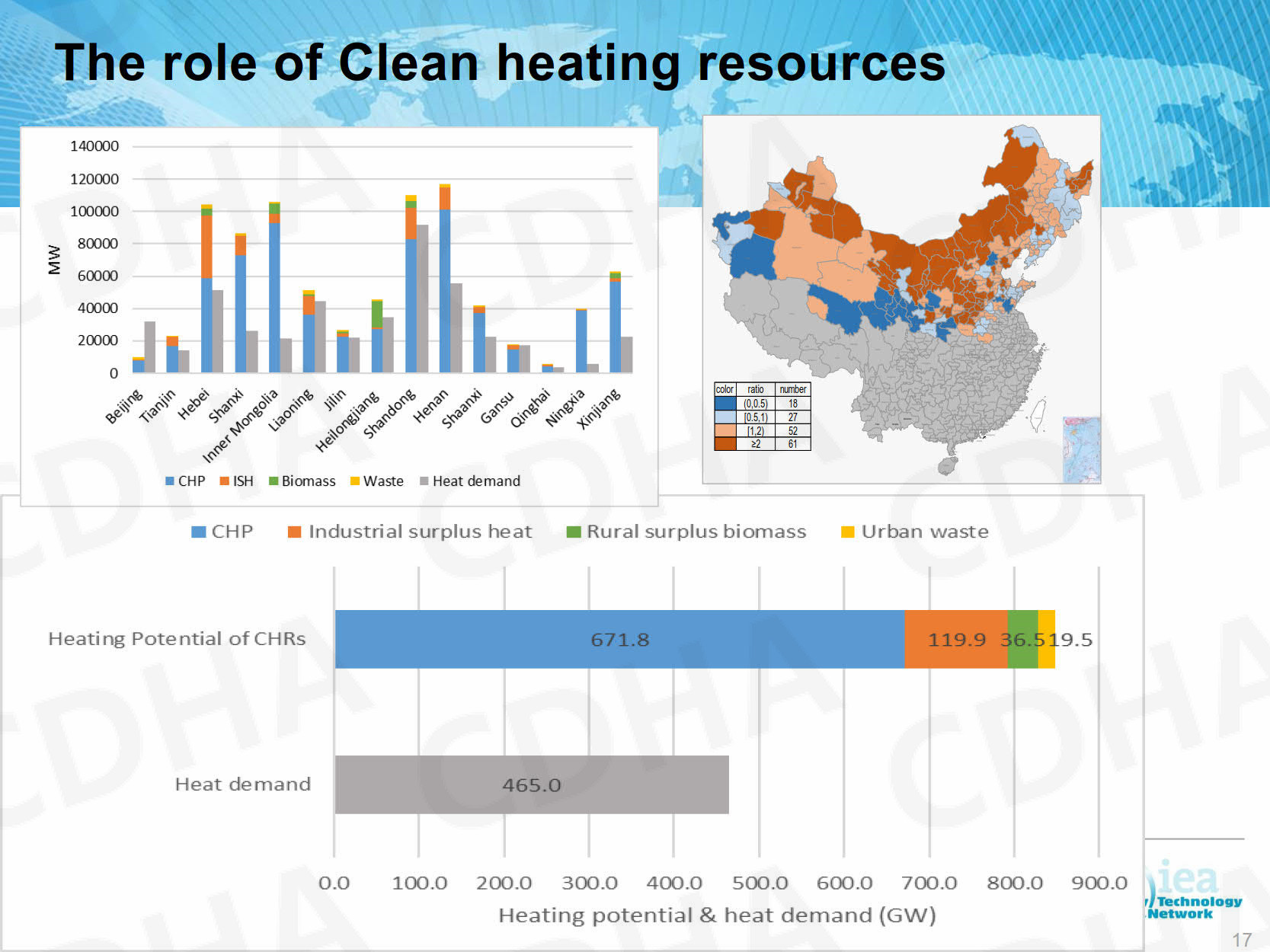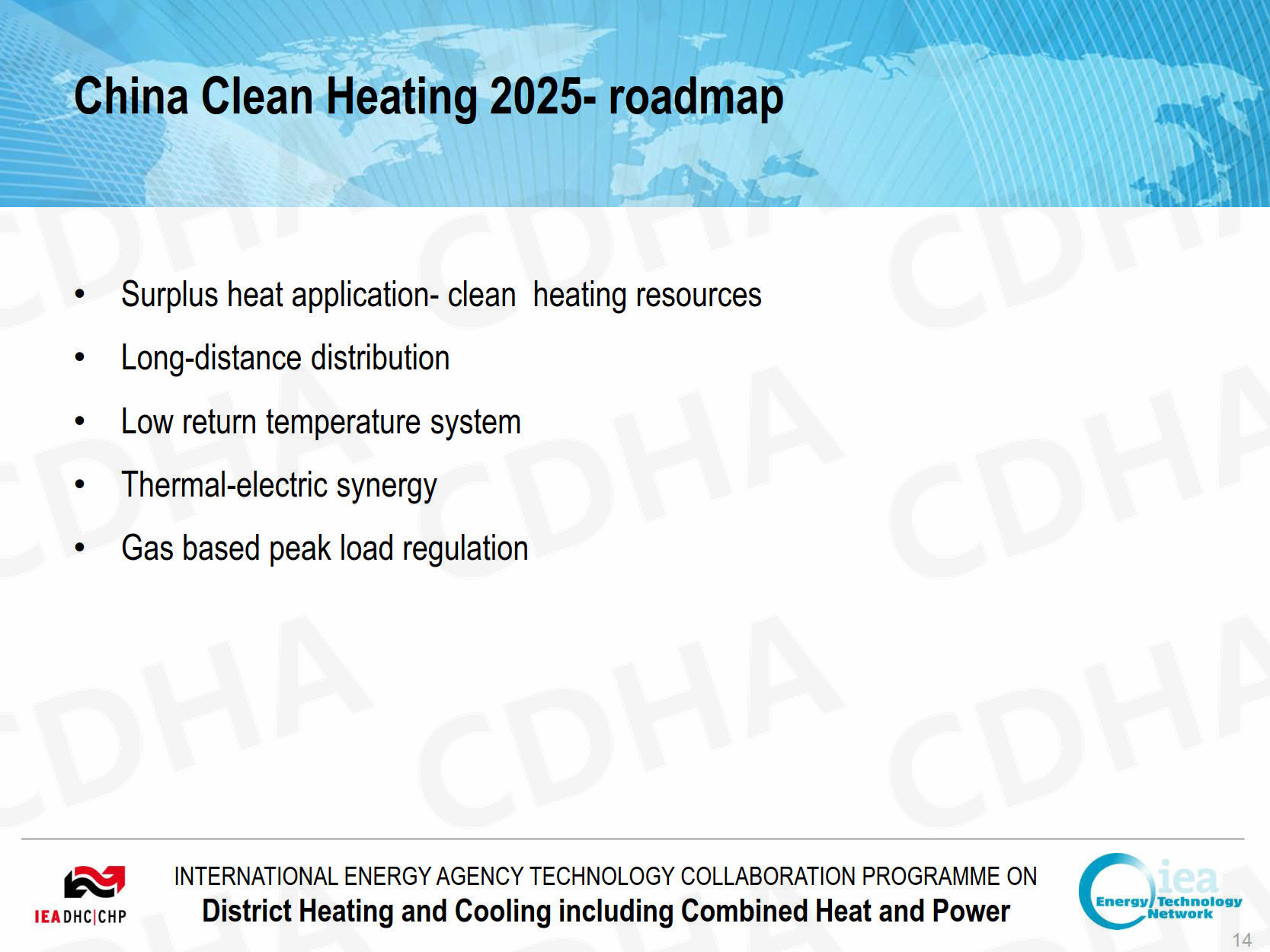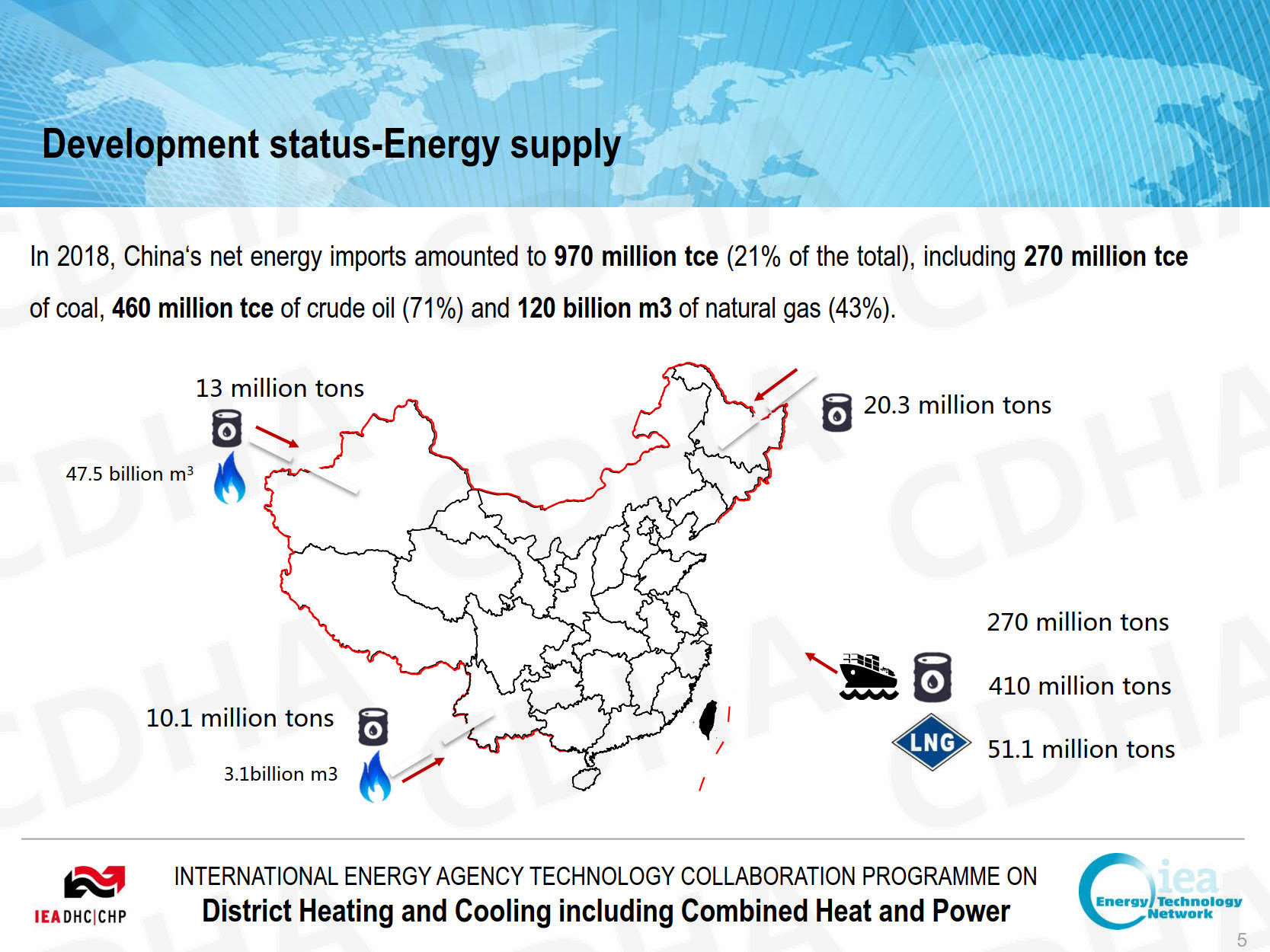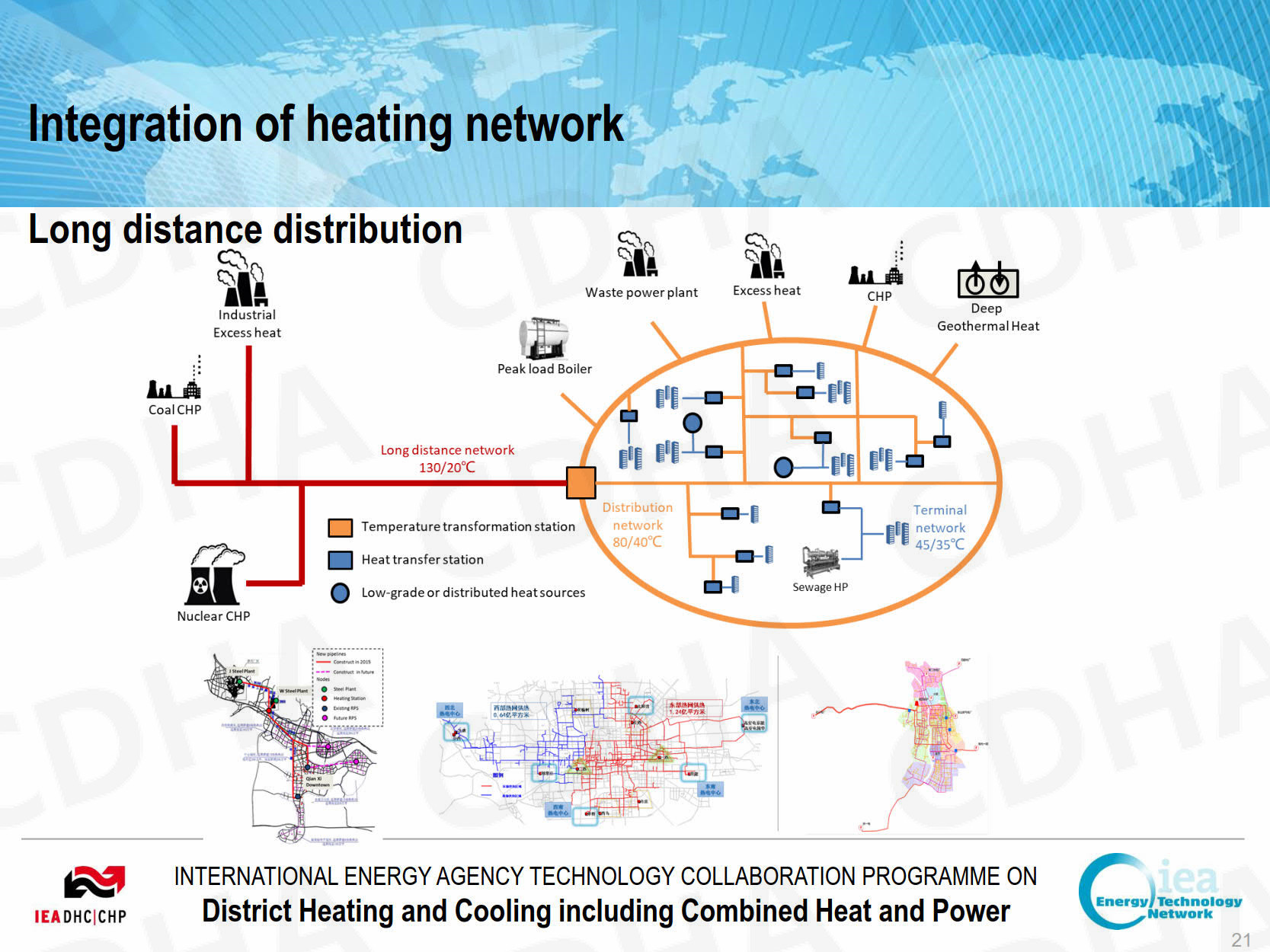 通過(guò)長(zhǎng)距離的能源運(yùn)輸,把這些能源從中國(guó)的西部地區(qū)或者是西南部地區(qū)向北部地區(qū)或者是東部地區(qū)進(jìn)行運(yùn)輸,這個(gè)就是我們正在考慮的有關(guān)于可再生能源利用的重要內(nèi)容,現(xiàn)在我們來(lái)看一下供熱這個(gè)領(lǐng)域。中國(guó)擁有世界上最大、發(fā)展最快的區(qū)域能源系統(tǒng),我們有19萬(wàn)公里的熱水管網(wǎng)和11萬(wàn)公里的蒸汽管網(wǎng),與能源系統(tǒng)進(jìn)行相比的話,我們面臨著非常多的挑戰(zhàn),因?yàn)槲覀兗s有90%的供熱主要還是來(lái)自于煤炭的,這也是我們現(xiàn)在正在面臨的問(wèn)題,我們應(yīng)該進(jìn)行一個(gè)反思,我們到底應(yīng)該怎么去做?怎么樣才能夠增加更多的可再生能源的使用,能夠提高能源的效率,比如說(shuō)未來(lái)天然氣我們應(yīng)該怎么用?我們應(yīng)該來(lái)考慮相關(guān)的商業(yè)模式,或者是定價(jià)等等相關(guān)的問(wèn)題。