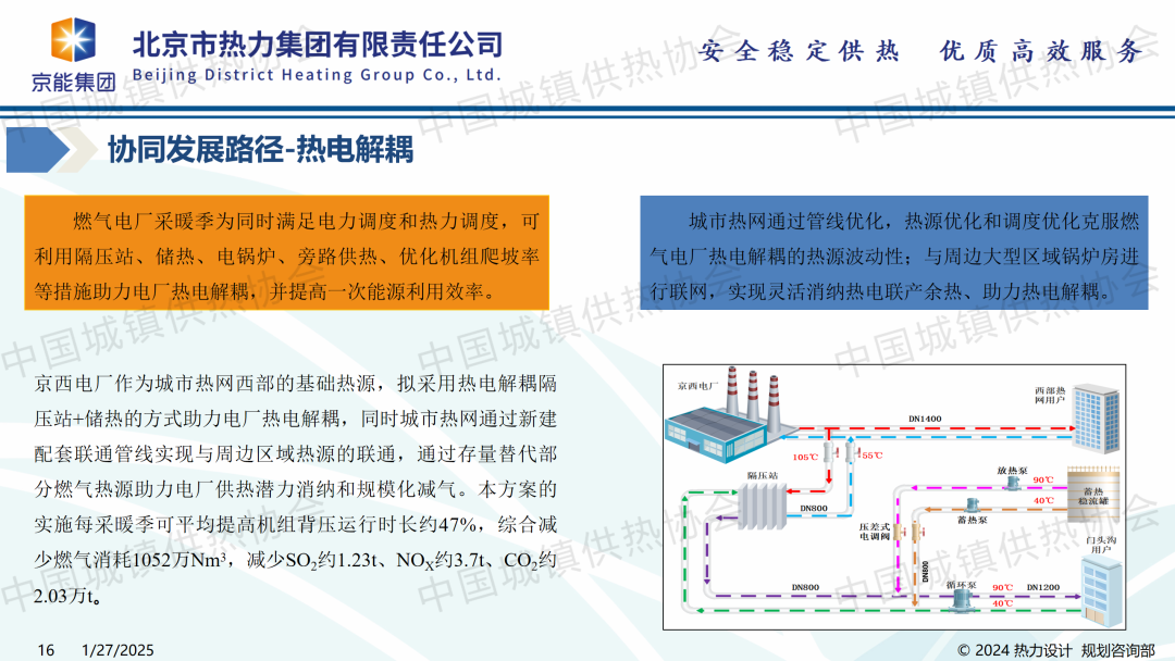 北京市熱力工程設(shè)計(jì)有限責(zé)任公司郭立良作了關(guān)于“‘雙碳’背景下北京燃?xì)怆姀S與城市熱網(wǎng)協(xié)同發(fā)展研究”的主題演講,介紹了項(xiàng)目研究背景、北京市熱電基本架構(gòu)、發(fā)電概況、供熱概況、熱電發(fā)展趨勢,以及余熱利用、熱電解耦、耦合新能源的協(xié)同發(fā)展路徑。