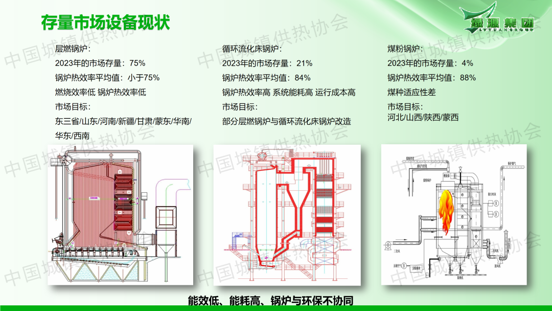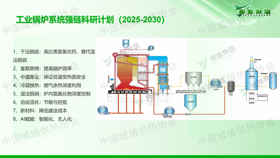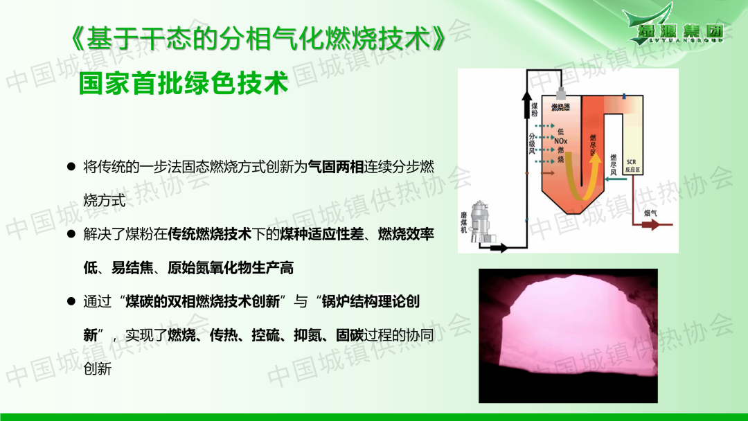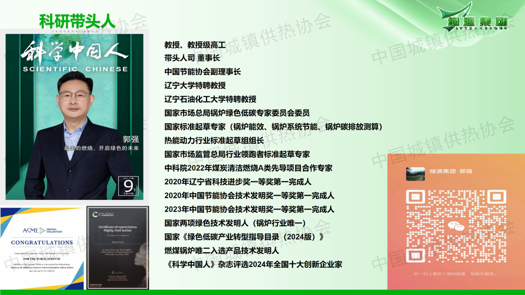 綠源能源環(huán)境科技集團(tuán)有限公司董事長、教授級高級工程師郭強(qiáng)從政策背景、市場分析、綠色技術(shù)、綠源優(yōu)勢、經(jīng)營模式五個方面作了關(guān)于“研發(fā)綠色技術(shù)助力燃煤工業(yè)鍋爐升級改造”的主題演講,介紹了基于干態(tài)的分相氣化燃燒技術(shù)、層燃室燃復(fù)合燃燒鍋爐技術(shù)、自由流化燃燒鍋爐技術(shù)等國家綠色技術(shù)。
