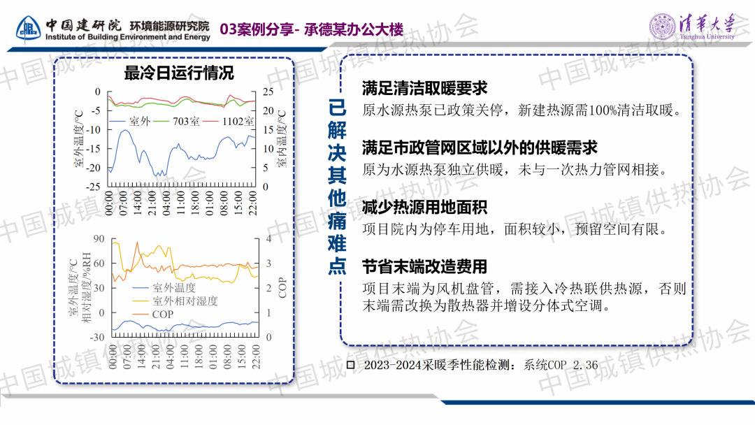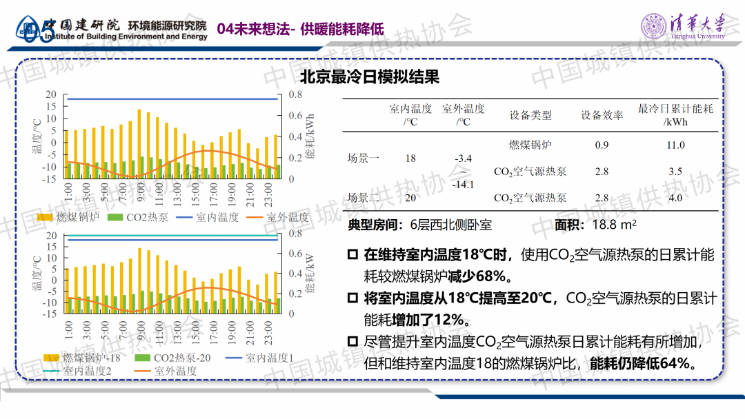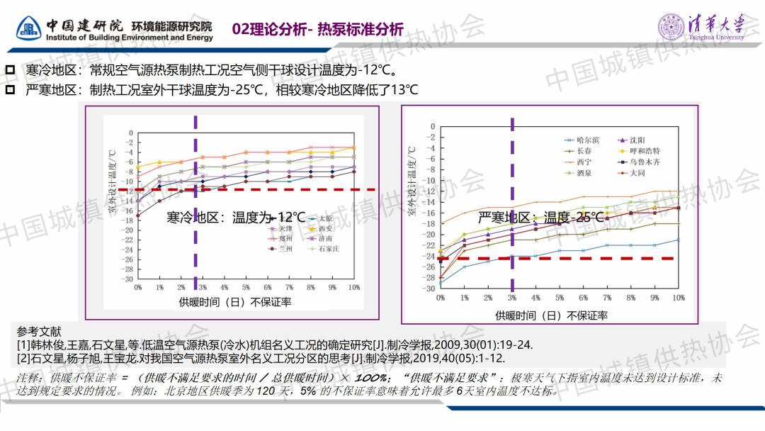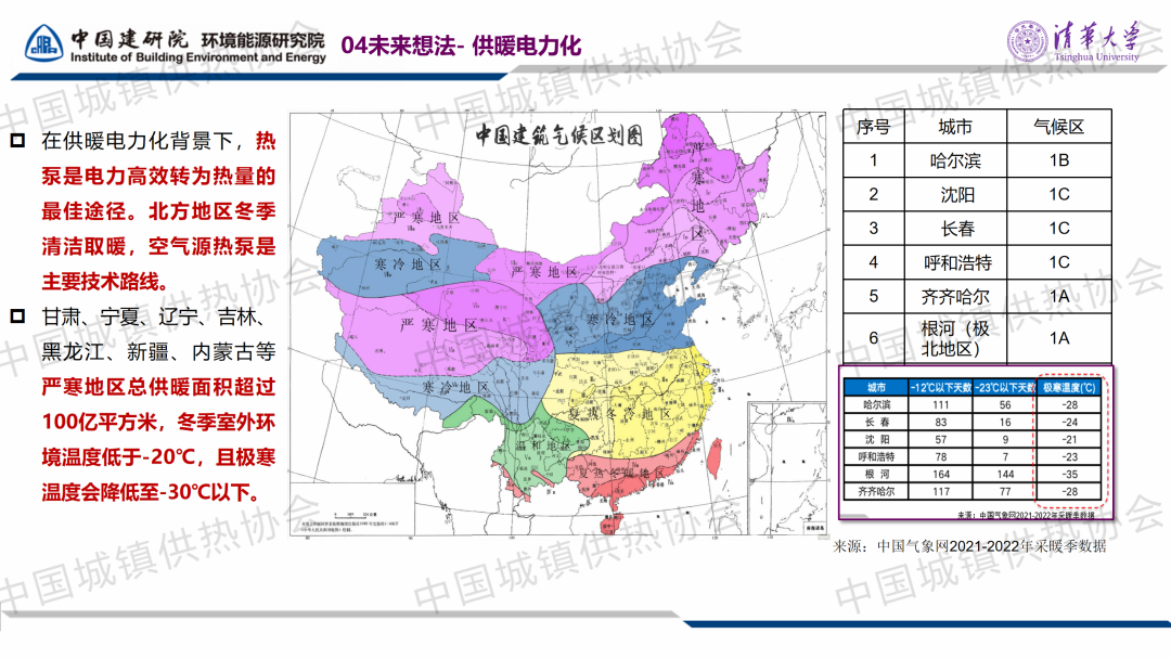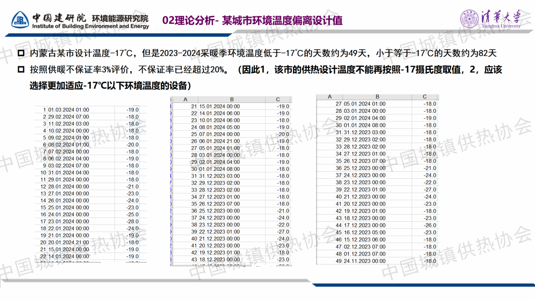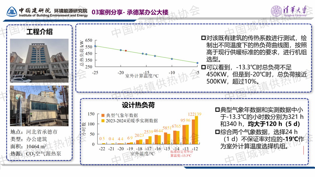 “室溫調(diào)控與末端建筑節(jié)能”分論壇,中國建筑科學研究院有限公司環(huán)能院愛康中心副主任李效禹作了關(guān)于“基于CO?空氣源熱泵供暖工程的既有建筑供暖室內(nèi)外參數(shù)設(shè)計與實踐”的主題演講。李副主任提出,對于計劃采用熱泵供暖的既有建筑熱源改造項目,可以進行“建筑熱負荷測試+極端溫度查詢”與“規(guī)范設(shè)計值”比對,適當降低室外環(huán)境溫度的設(shè)計參數(shù),找出合理的設(shè)備選型參數(shù)。