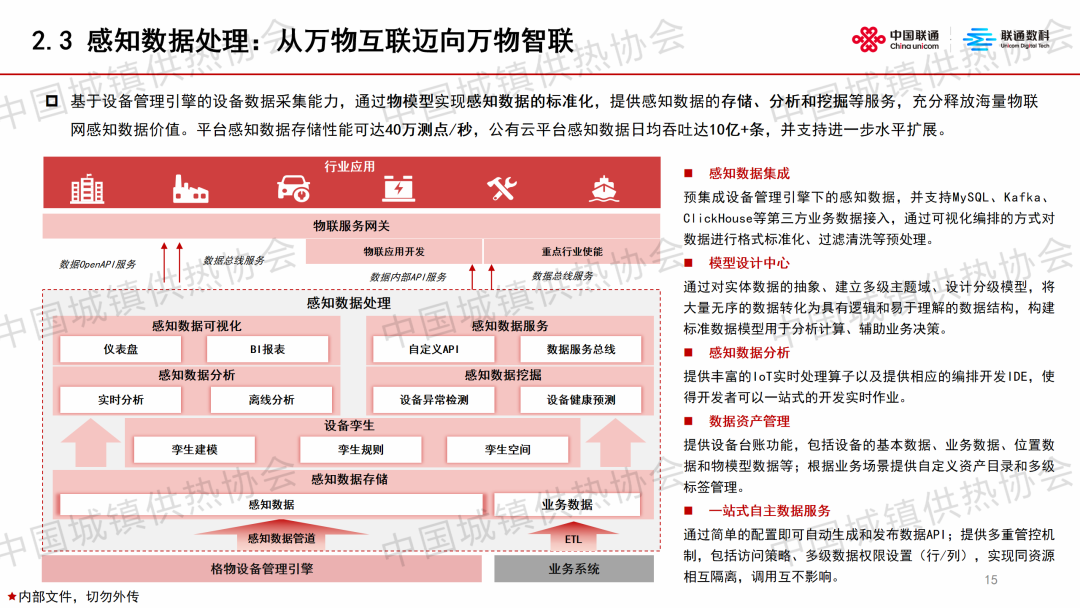 “大數(shù)據(jù)物聯(lián)網(wǎng)賦能智慧供熱”主題論壇上,聯(lián)通物聯(lián)網(wǎng)有限責任公司王均介紹了中國聯(lián)通格物設(shè)備管理平臺的能力體系和平臺特色優(yōu)勢。格物設(shè)備管理平臺包含設(shè)備管理引擎、感知數(shù)據(jù)處理、物聯(lián)應用開發(fā)三大核心版塊和邊緣感知、時空服務等若干增值服務模塊,與格物CMP平臺等高效聯(lián)動,形成了“端邊云網(wǎng)用”一體化貫通。