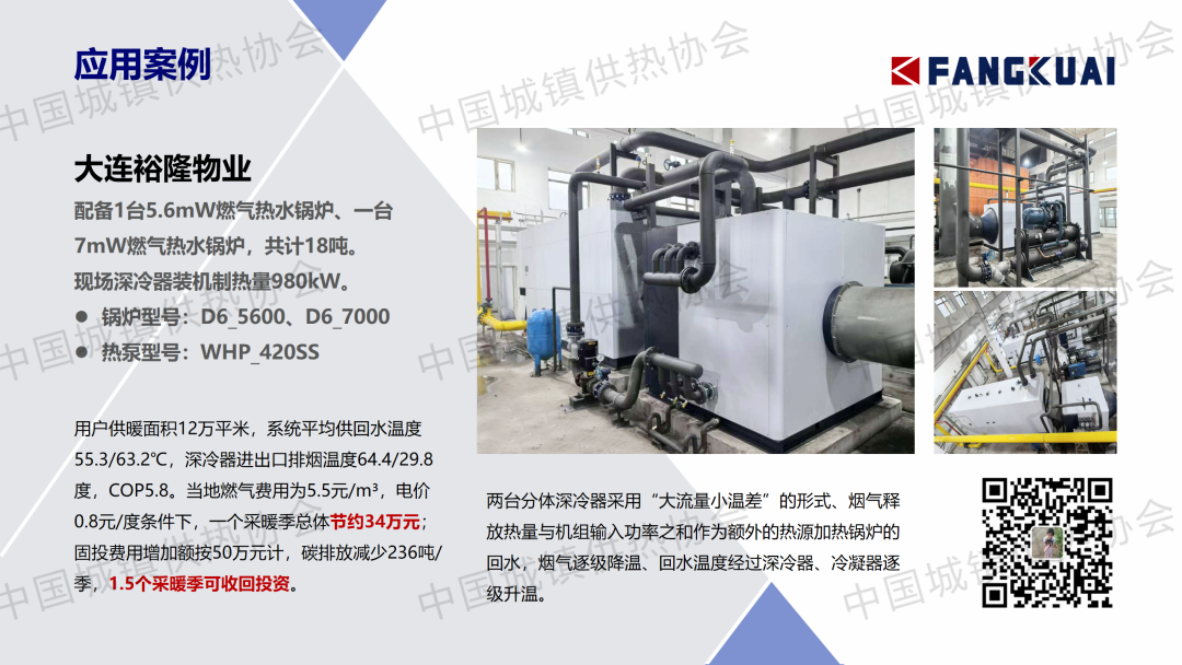 “供熱節(jié)能運(yùn)行與管理”分論壇上,方快鍋爐有限公司研發(fā)總監(jiān)盧潔作了關(guān)于“燃?xì)鈴?fù)合樣式供暖與煙氣源系統(tǒng)應(yīng)用”的主題演講,介紹了多能源耦合供暖方案、煙氣源熱泵+耦合供暖方案、大管網(wǎng)-綠電電極供暖方案以及相關(guān)應(yīng)用案例。