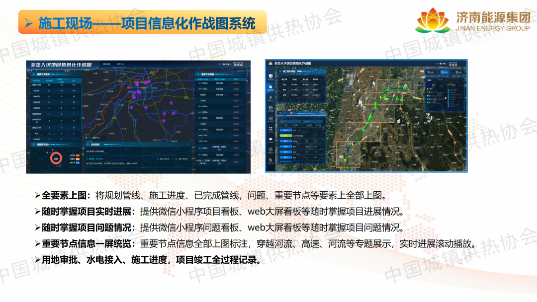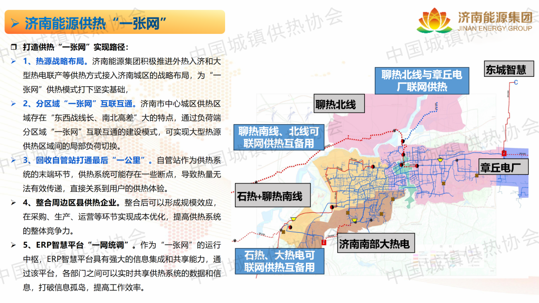 儲(chǔ)熱及低碳供熱分論壇上,濟(jì)南城投設(shè)計(jì)有限公司董事長(zhǎng)張立波從設(shè)計(jì)方案、施工現(xiàn)場(chǎng)、智慧平臺(tái)、源網(wǎng)荷儲(chǔ)四個(gè)方面分享了濟(jì)南能源“一張網(wǎng)”多元技術(shù)創(chuàng)新與應(yīng)用實(shí)踐。濟(jì)南能源的供熱“一張網(wǎng)”理論思路不僅僅是技術(shù)層面上互聯(lián)互通,還包括但不限于熱源、熱網(wǎng)、換熱站等各個(gè)環(huán)節(jié)的相互銜接和配合。實(shí)現(xiàn)了各供熱系統(tǒng)的集中調(diào)度和統(tǒng)一管理,確保熱能在各個(gè)環(huán)節(jié)中的高效傳輸和分配。將各供熱企業(yè)納入濟(jì)南能源集團(tuán)的統(tǒng)一管理平臺(tái),實(shí)現(xiàn)資源共享、信息互通、協(xié)同配合。