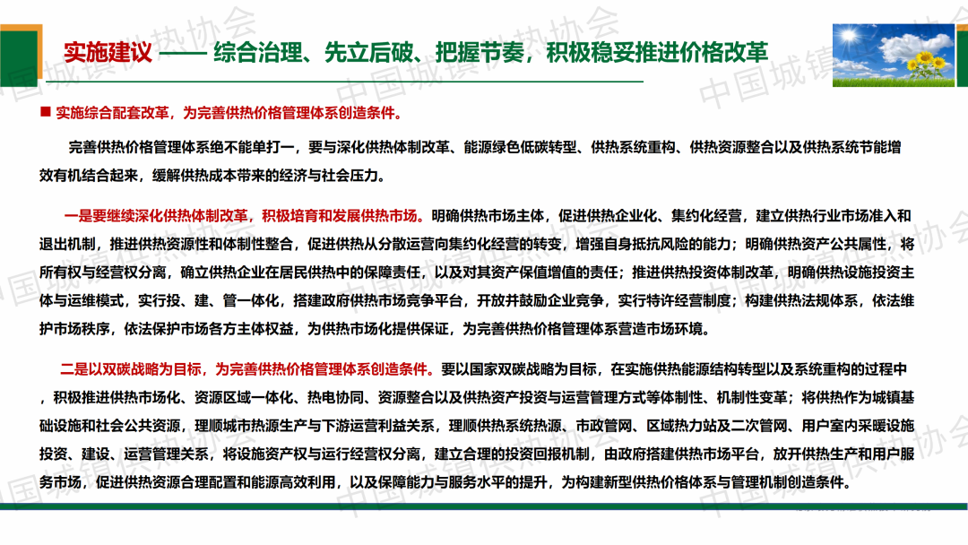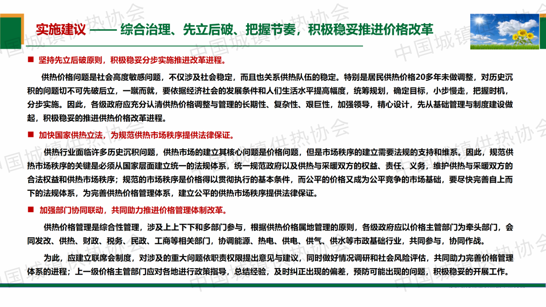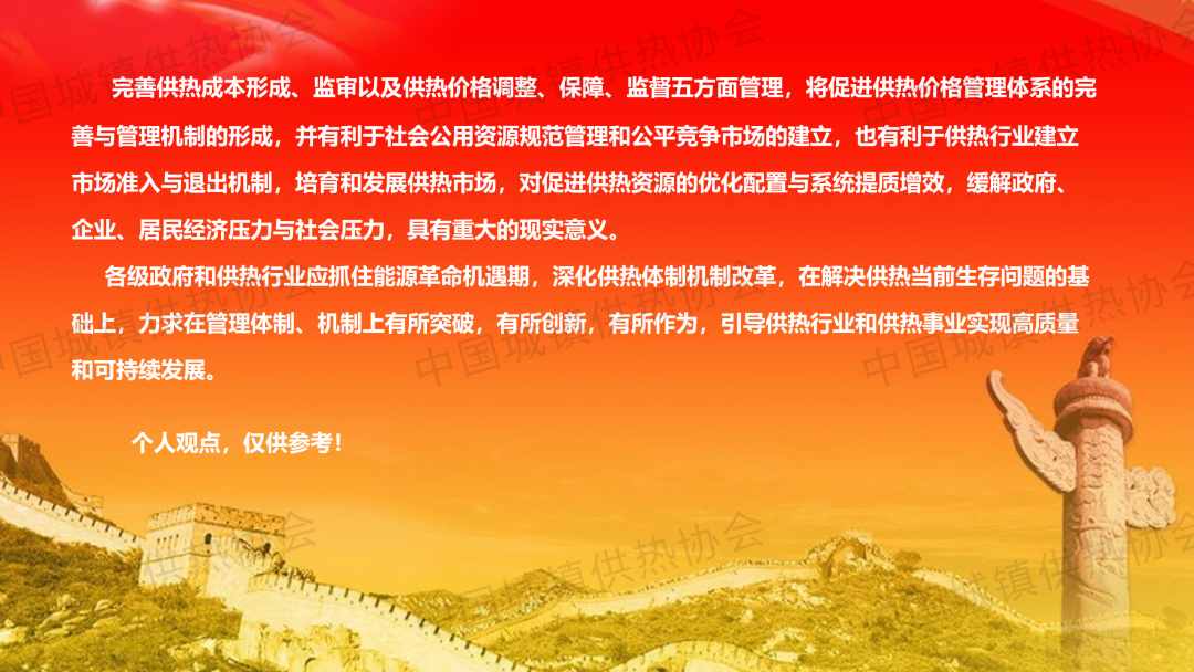 住建部供熱專家組成員,中國城鎮(zhèn)供熱協(xié)會供熱技術(shù)專業(yè)委員會顧問郭維圻作了題為“對完善我國供熱價格管理體系的思考”的演講,介紹了完善供熱價格管理體系必須明確的觀點與原則、基本框架與要點,并對完善供熱價格管理體系提出實施建議,總結(jié)提出完善供熱成本形成、監(jiān)審以及供熱價格調(diào)整、保障、監(jiān)督五方面管理,將促進供熱價格管理體系的完善與管理機制的形成,并有利于社會公用資源規(guī)范管理和公平競爭市場的建立,也有利于供熱行業(yè)建立市場準(zhǔn)入與退出機制,培育和發(fā)展供熱市場,對促進供熱資源的優(yōu)化配置與系統(tǒng)提質(zhì)增效,緩解政府、企業(yè)、居民經(jīng)濟壓力與社會壓力,具有重大的現(xiàn)實意義。