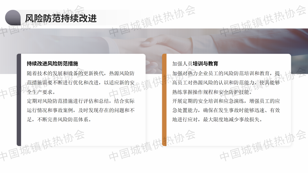 “供熱生產安全運行風險識別與防范”主題論壇上,唐山市熱力集團有限公司副總經理郭華作了關于“熱源風險與防范”的主題演講,介紹了熱源設備設施、輔助系統(tǒng)、附屬設施的風險與防范,并分享了熱源設備設施安全管理與培訓經驗。