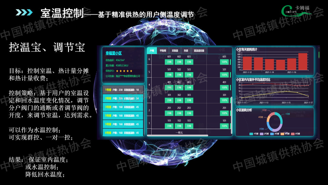 “室溫調(diào)控與末端建筑節(jié)能”分論壇上,北京卡姆??萍加邢薰径麻L(zhǎng)蘇紅作了題為“基于智慧供熱大系統(tǒng)的室溫精準(zhǔn)調(diào)節(jié)和末端建筑節(jié)能智能化”的演講,介紹了“CCSH福能智暖”智慧供熱平臺(tái)及其他解決方案和產(chǎn)品線,并分享了相關(guān)案例。