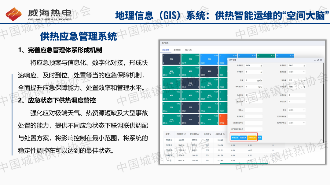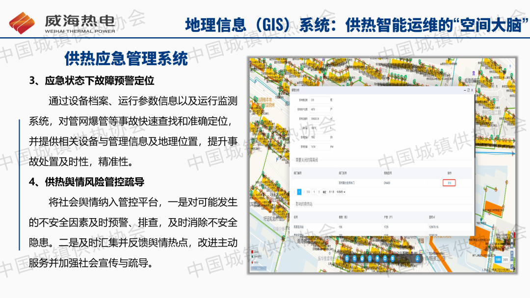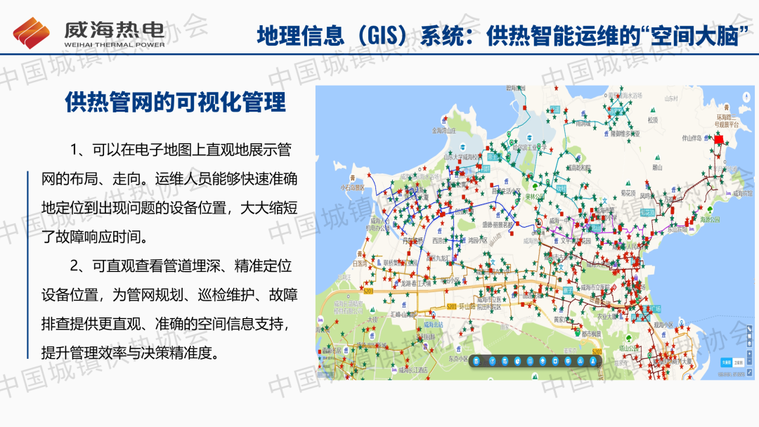 威海熱電集團有限公司高區(qū)供熱公司總經(jīng)理宋曉文從地理信息系統(tǒng)深度應用、源網(wǎng)站樓戶全鏈條調(diào)控、大數(shù)據(jù)驅(qū)動前置化服務三個方面展開了關(guān)于“供熱管網(wǎng)智能化運維:節(jié)能降耗與提升服務的解決方案”的主題演講。