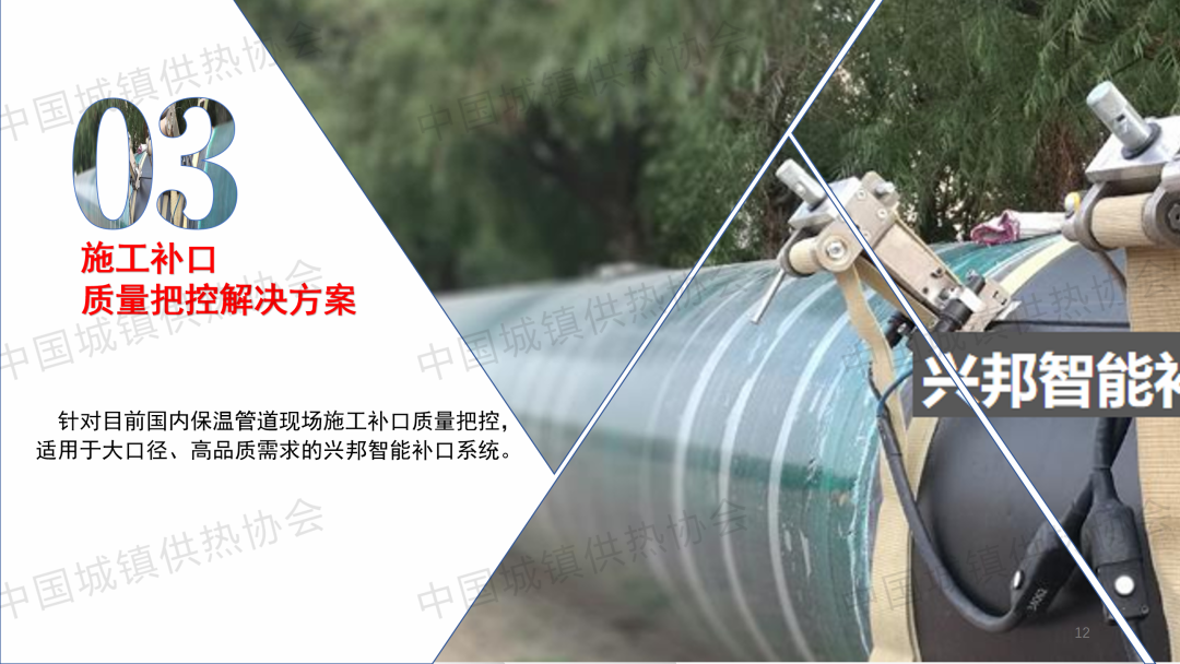 會(huì)上,唐山興邦管道工程設(shè)備有限公司技術(shù)工程師王帥作了關(guān)于“管道改造過(guò)程中保溫接口的質(zhì)量把控”的主題演講,介紹了老舊管網(wǎng)改造與保溫管道解決方案、施工補(bǔ)口質(zhì)量把控解決方案、管網(wǎng)損耗解決方案。