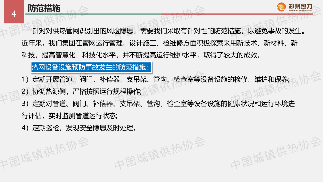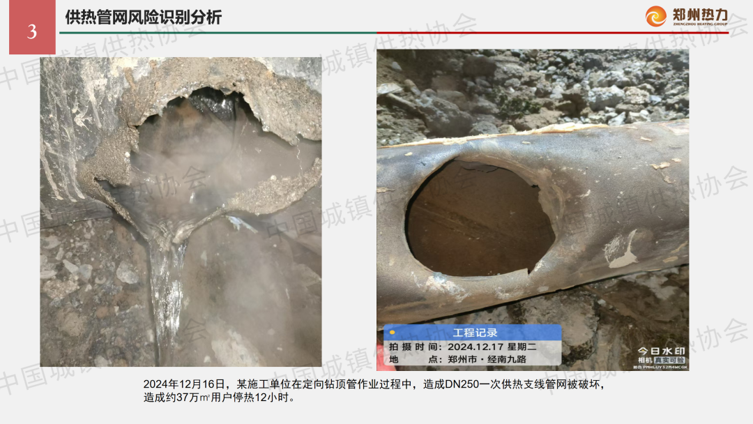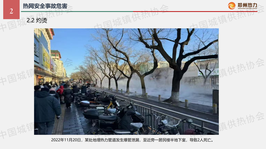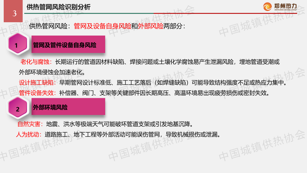 “供熱生產(chǎn)安全運行風險識別與防范”主題論壇上,鄭州熱力集團安全管理部經(jīng)理黃強作了關于“影響供熱管網(wǎng)安全運行的風險識別分析及防范措施”的主題演講,結合實踐案例分享了供熱管網(wǎng)安全事故危害、風險識別分析方法以及防范措施。