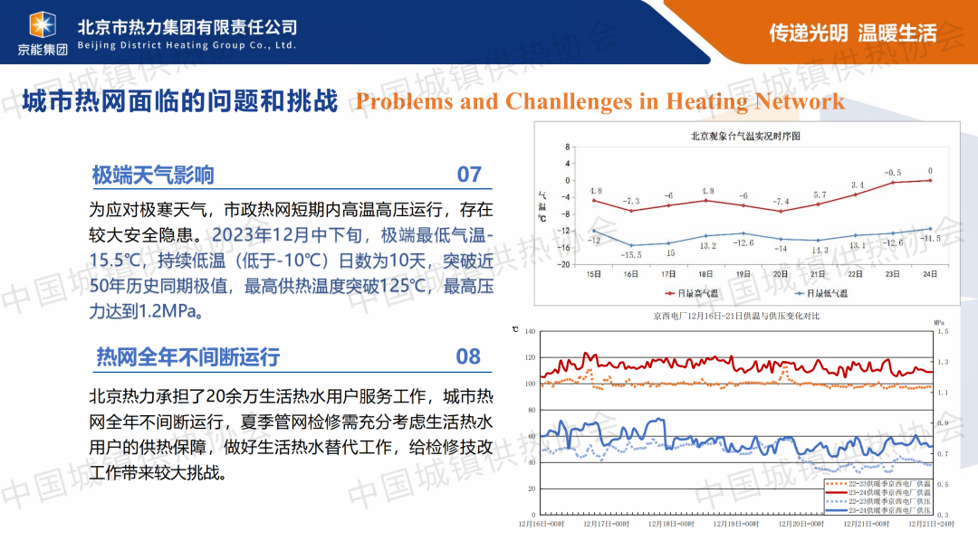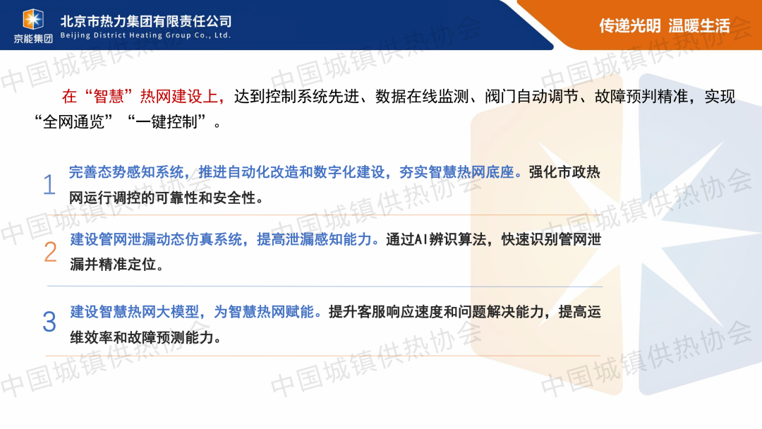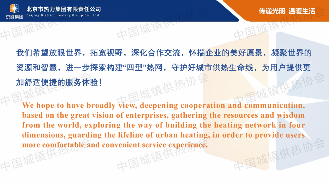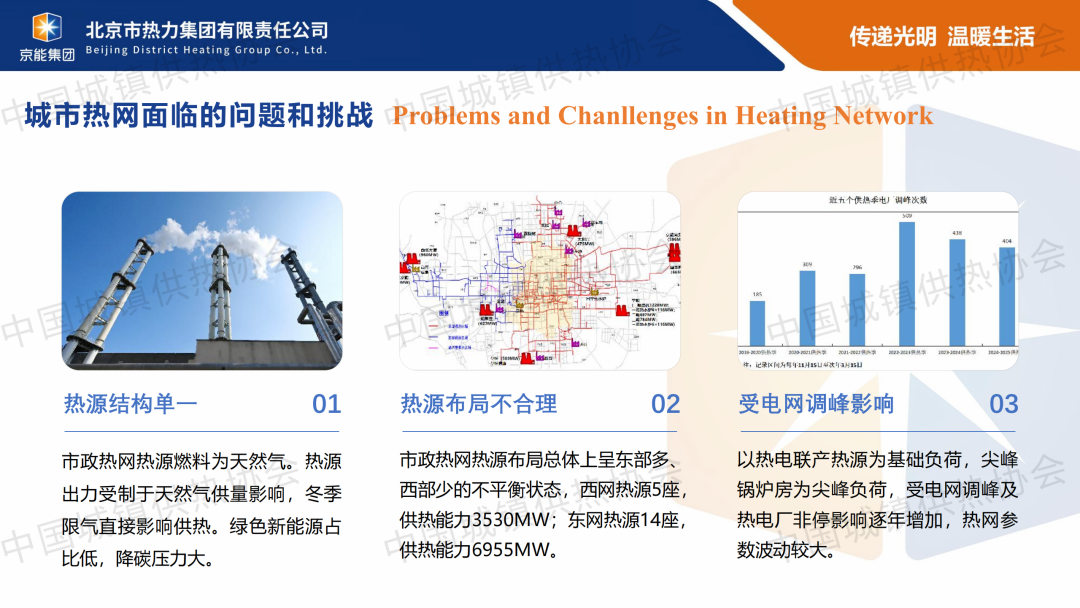 北京市熱力集團有限責任公司總經(jīng)理韓宇峰作了題為“構建‘四型’熱網(wǎng) 守護城市供熱生命線”的演講。介紹了城市熱網(wǎng)面臨的問題與挑戰(zhàn),以及如何構建“堅強、智慧、環(huán)保、友好”的城市熱網(wǎng)。
