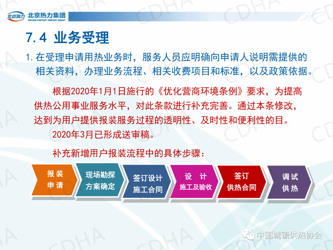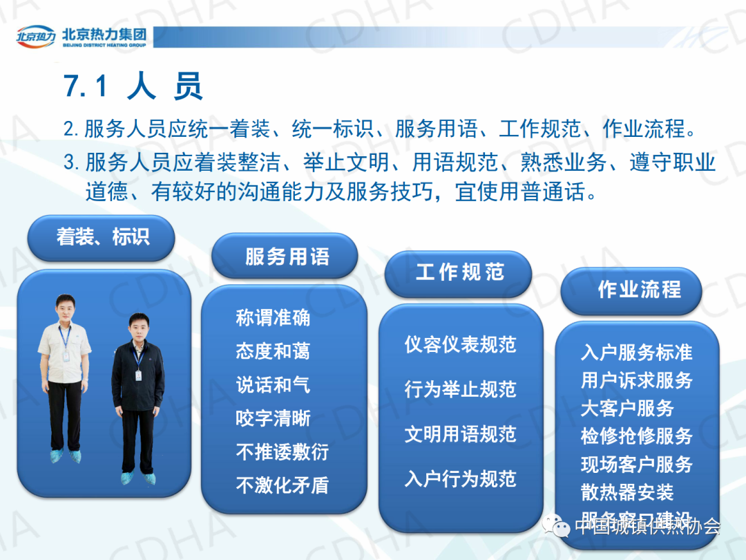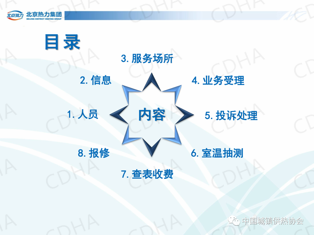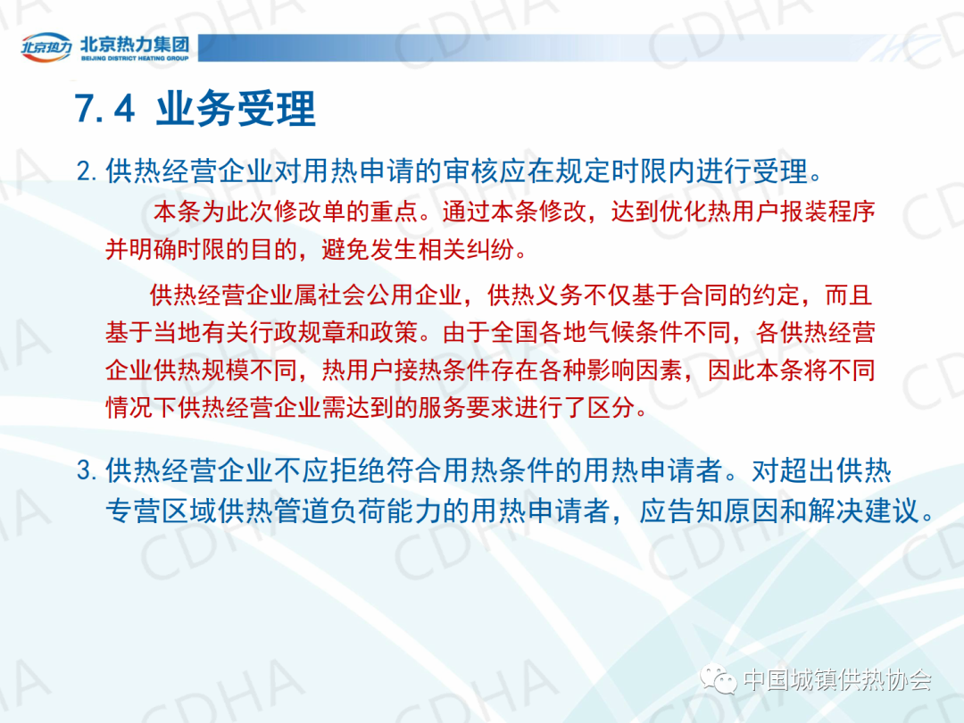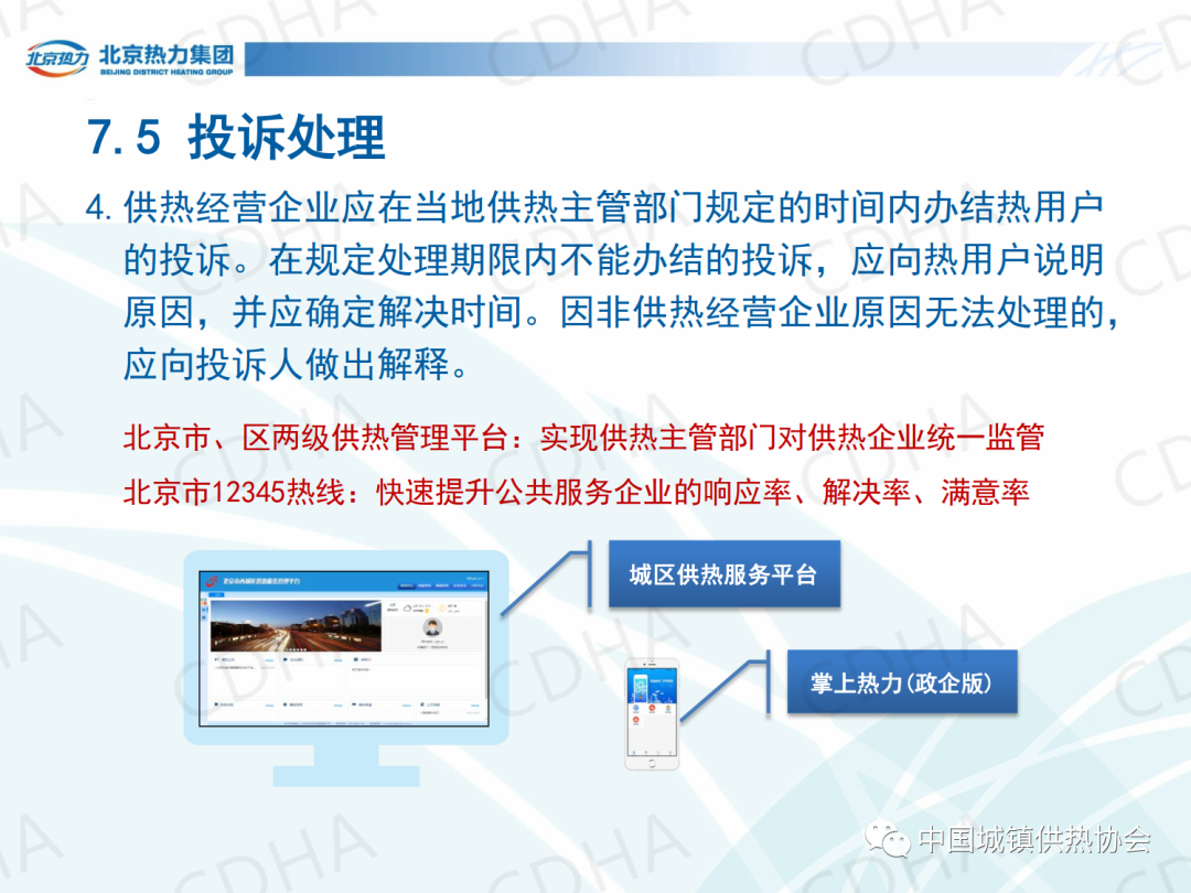 培訓(xùn)會上,北京市熱力集團(tuán)有限責(zé)任公司西城分公司黨委書記唐衛(wèi)圍繞《城鎮(zhèn)供熱服務(wù)》的第7章節(jié)內(nèi)容,介紹了城鎮(zhèn)供熱服務(wù)中人員、信息、服務(wù)場所、業(yè)務(wù)受理、投訴受理、室溫抽測、查表收費、報修八個方面的規(guī)定。課件內(nèi)容分享如下: