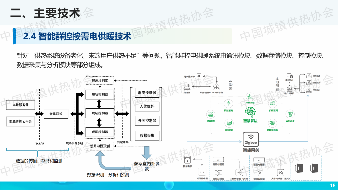 “室溫調(diào)控與末端建筑節(jié)能”分論壇,中國建筑科學(xué)研究院有限公司環(huán)能院供熱中心副主任陽春作了關(guān)于“基于邊緣計算的按需精準(zhǔn)供熱技術(shù)”的主題演講,分享了樓宇式分布泵平衡供暖、戶間物聯(lián)網(wǎng)溫控閥平衡供暖、智能群控按需電供暖等技術(shù)。
