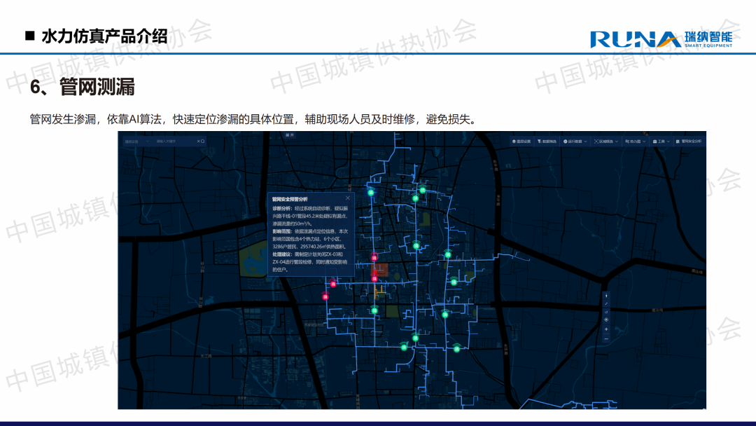 “供熱管理與運(yùn)行監(jiān)測新技術(shù)應(yīng)用”分論壇上,瑞納智能設(shè)備股份有限公司算法工程師徐秀霖作了關(guān)于“供熱管網(wǎng)智能化運(yùn)行與大規(guī)模管網(wǎng)泄漏報(bào)警系統(tǒng)”的主題演講,介紹了集中供熱管網(wǎng)智能化運(yùn)行的核心算法、水力仿真產(chǎn)品以及管網(wǎng)泄露檢測綜合方案。