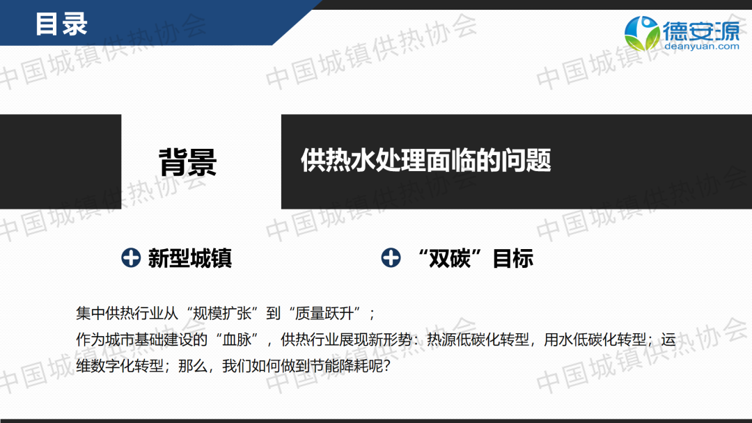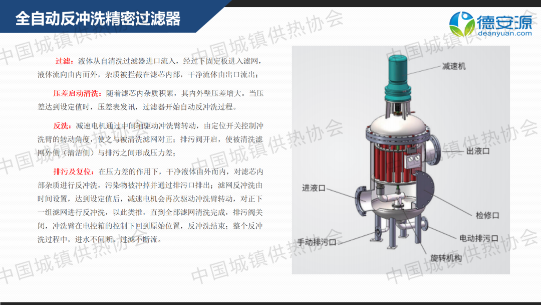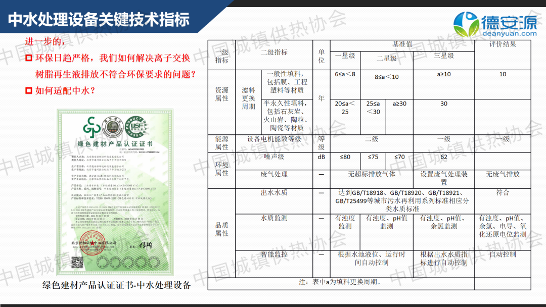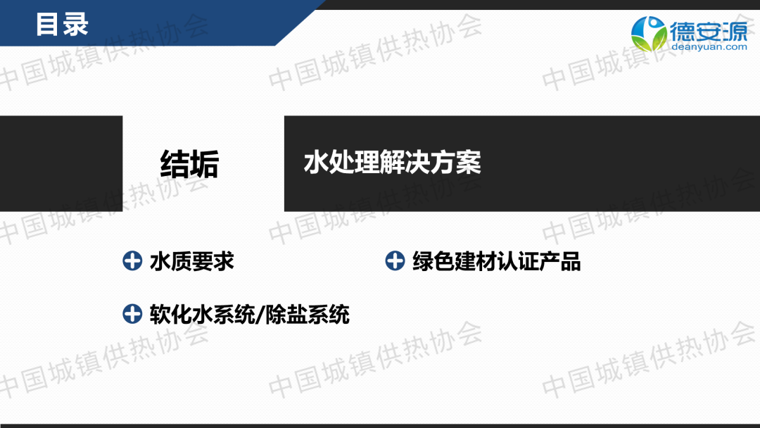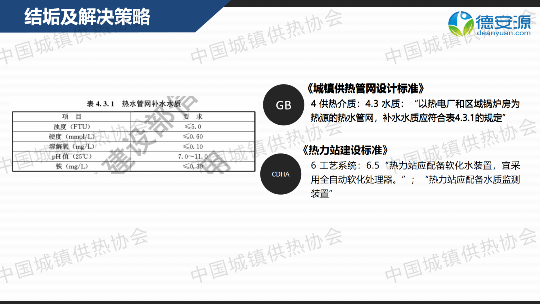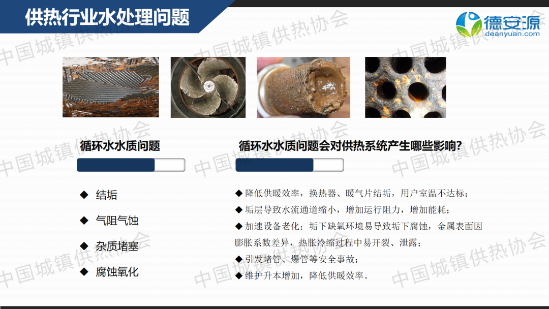 “供熱節(jié)能運(yùn)行與管理”分論壇上,北京德安源環(huán)境科技發(fā)展有限公司總經(jīng)理向文鑒作了關(guān)于“新形勢(shì)下供熱水處理解決方案”的主題演講,分享了供熱行業(yè)中水結(jié)垢、氣阻氣蝕、雜質(zhì)堵塞、腐蝕氧化等問題的解決策略,以及中水處理設(shè)備關(guān)鍵技術(shù)指標(biāo)。