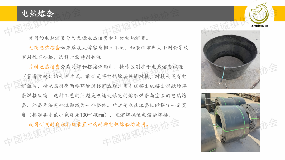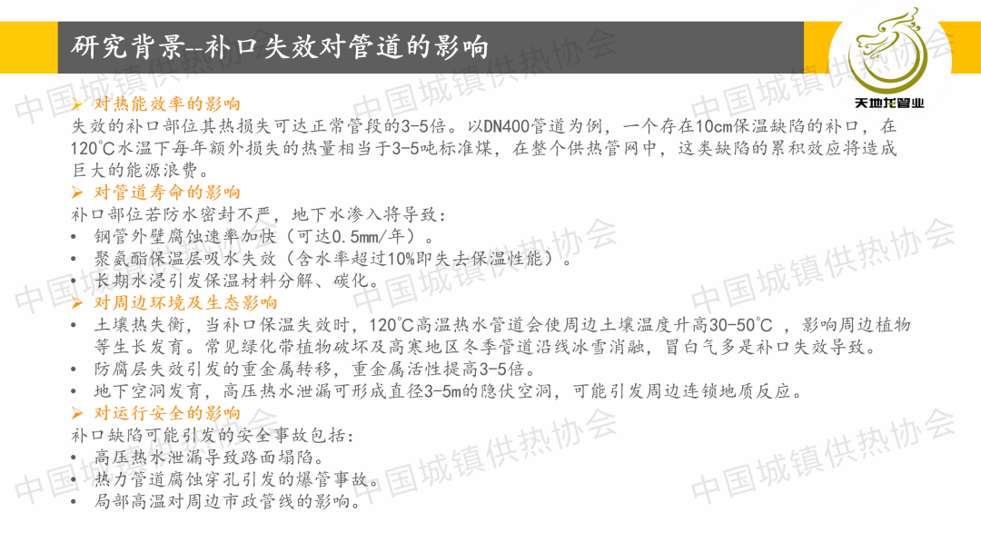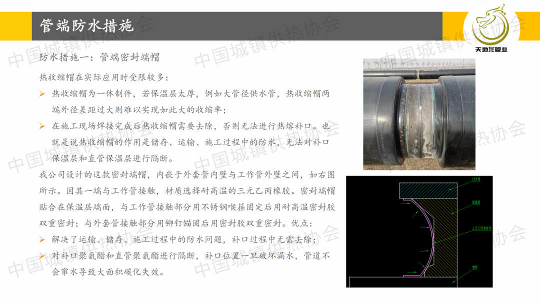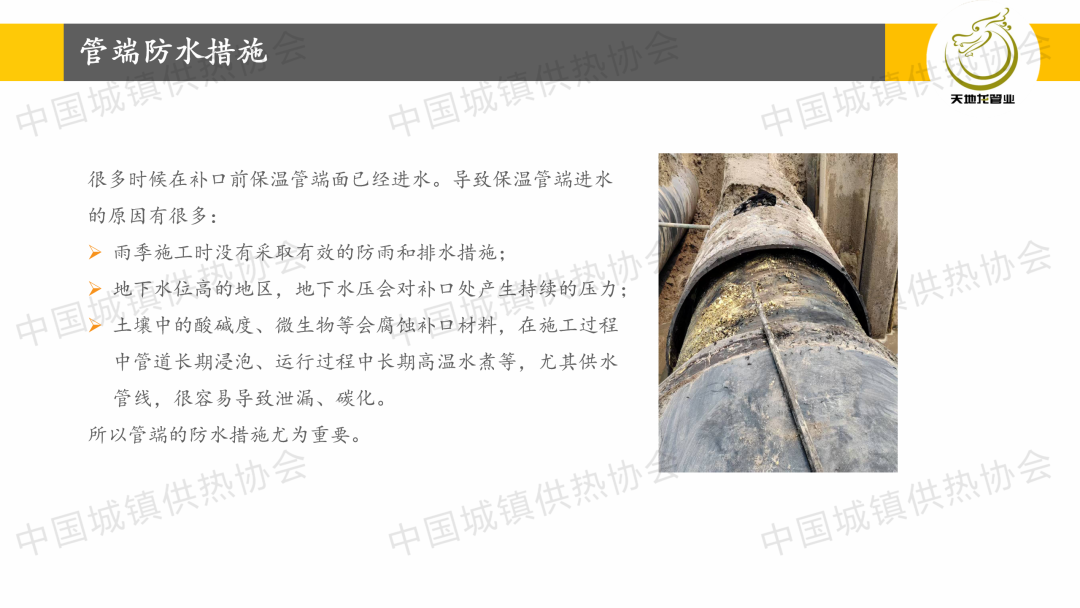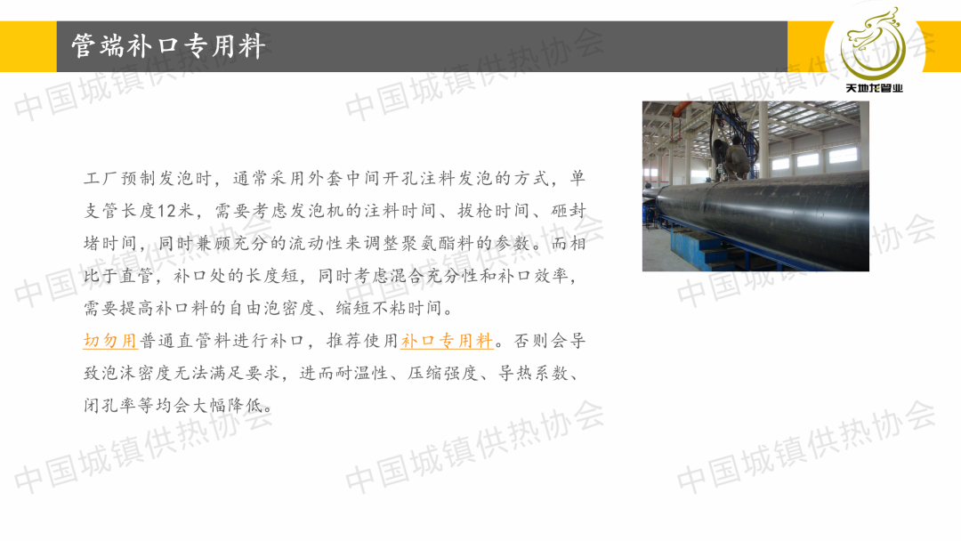 分論壇上,天津天地龍管業(yè)股份有限公司技術(shù)質(zhì)量部經(jīng)理田立倩作了關(guān)于“熱力管道補(bǔ)口質(zhì)量提高方案的研究”的主題演講,介紹了管端防水措施、補(bǔ)口專(zhuān)用設(shè)備、管端補(bǔ)口用料三種提高熱力管道補(bǔ)口質(zhì)量的方案。
