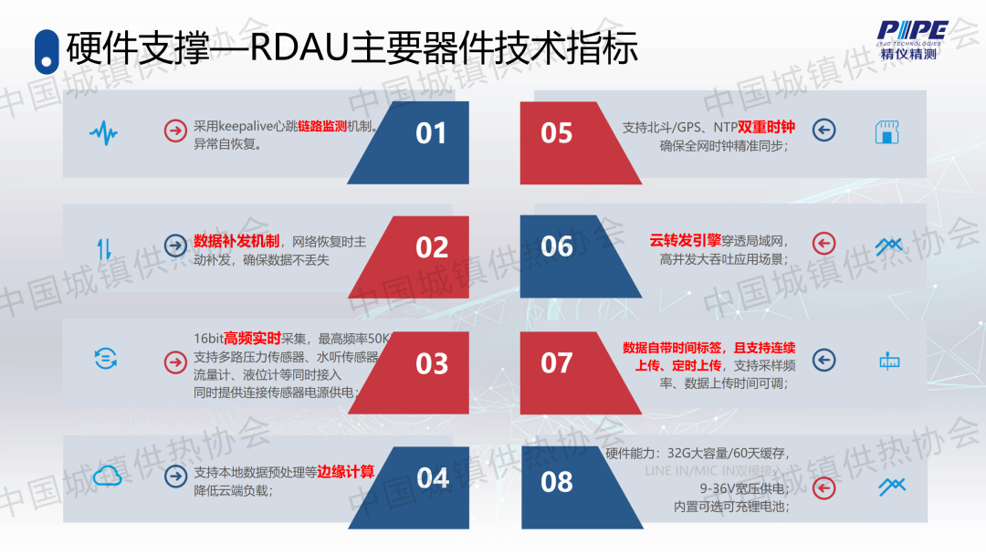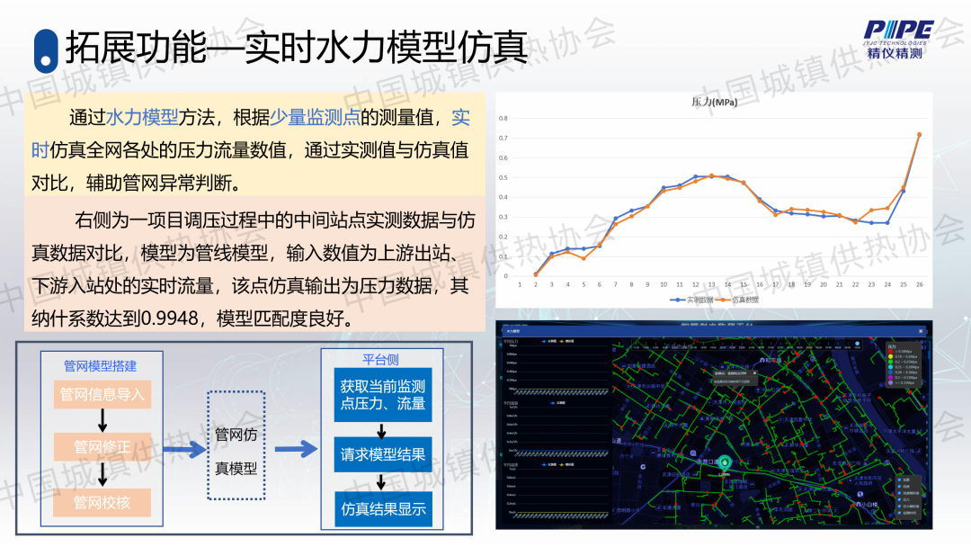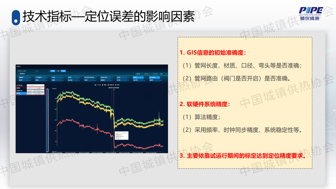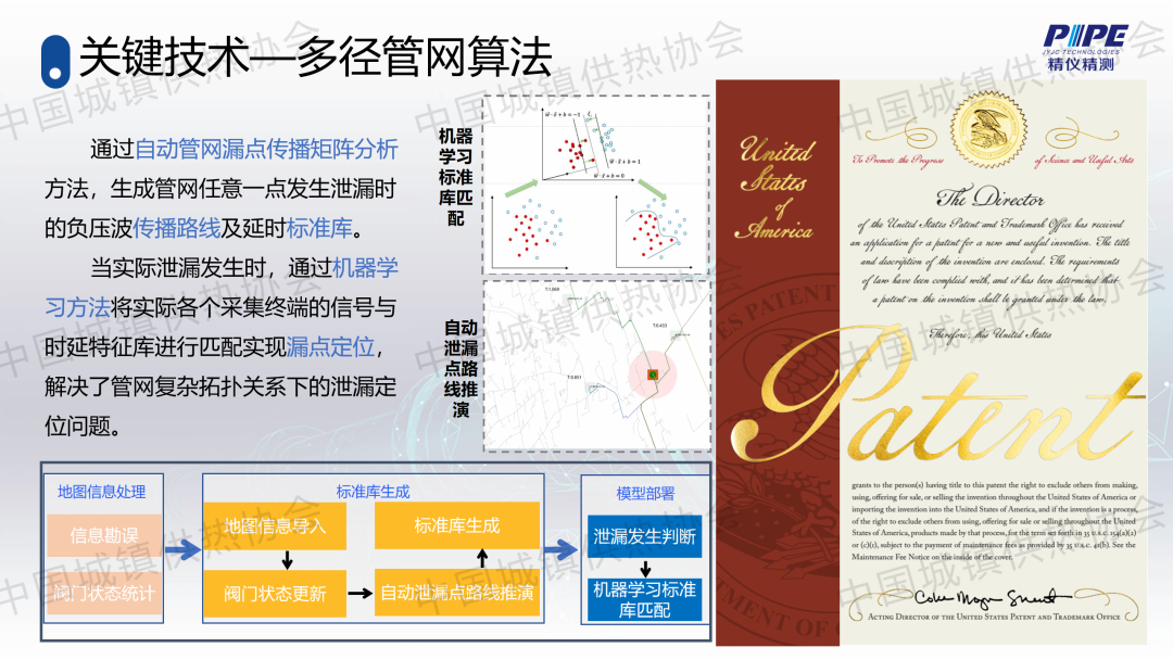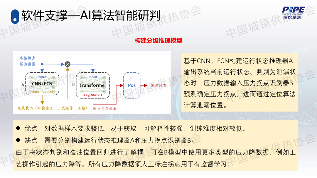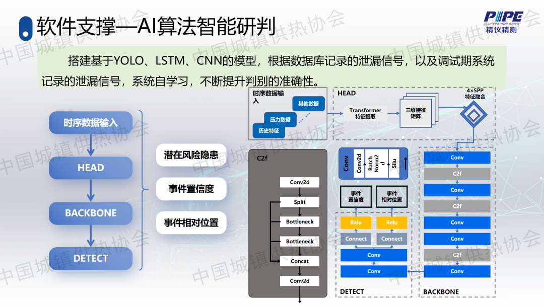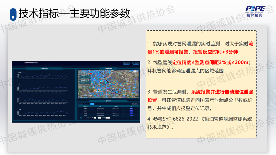 “管道檢漏、監(jiān)測與失水治理”分論壇上,天津精儀精測科技有限公司副總經(jīng)理高潮作了關(guān)于“基于人工智能的一級管網(wǎng)壓力波泄漏監(jiān)測技術(shù)”的主題演講,介紹了管道全生命周期管理及供熱管網(wǎng)爆管、泄漏監(jiān)測與預(yù)警系統(tǒng)的架構(gòu)、技術(shù)原理、關(guān)鍵技術(shù)、技術(shù)指標(biāo)、軟件支撐、硬件支撐等,并分享了相關(guān)應(yīng)用案例。