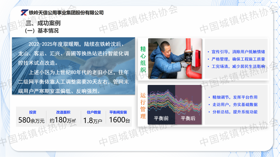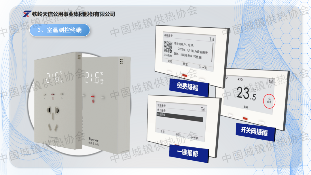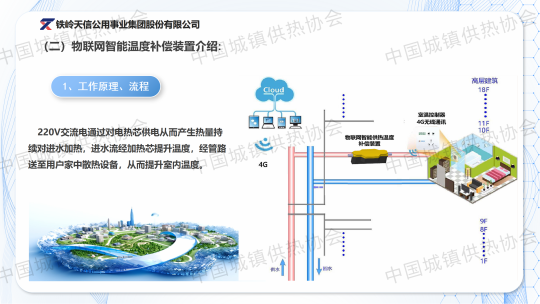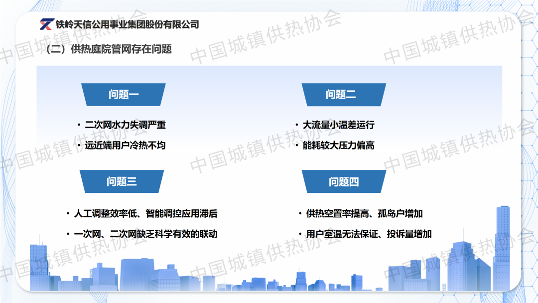 “供熱系統(tǒng)智能運(yùn)行與調(diào)控”主題論壇上,鐵嶺天信公用事業(yè)集團(tuán)股份有限公司總工程師周革兵作了關(guān)于“供熱庭院管網(wǎng)智能化調(diào)控系統(tǒng)應(yīng)用分享交流”的主題演講,介紹了供熱庭院管網(wǎng)存在的問(wèn)題和解決方案,并對(duì)公司智慧供熱云平臺(tái)、物聯(lián)網(wǎng)溫度平衡閥、室溫測(cè)控終端、物聯(lián)網(wǎng)智能溫度補(bǔ)償裝置等產(chǎn)品和應(yīng)用案例進(jìn)行了講解。