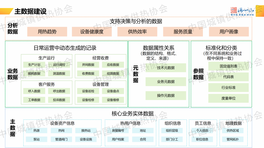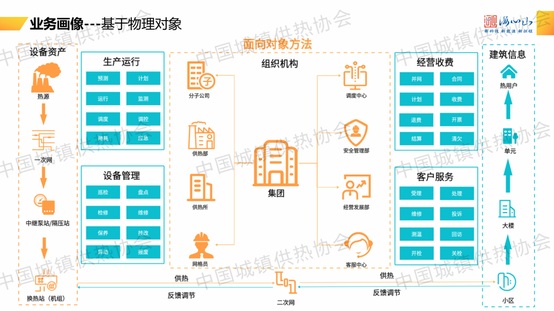 “人工智能助力智慧供熱未來發(fā)展”主題論壇上,海心山(遼寧)能源科技集團(tuán)有限公司董事長孫圣斌作了關(guān)于“探索從物理模型到業(yè)務(wù)視角下的智慧供熱應(yīng)用畫像”的主題演講,介紹了生產(chǎn)、收費(fèi)、客服、設(shè)備資產(chǎn)等業(yè)務(wù)模型,提出要引入精益生產(chǎn)思想,從“人機(jī)料法環(huán)”維度進(jìn)行業(yè)務(wù)優(yōu)化,實(shí)現(xiàn)數(shù)據(jù)驅(qū)動(dòng)的高效供熱。