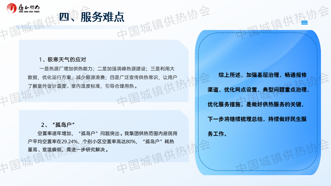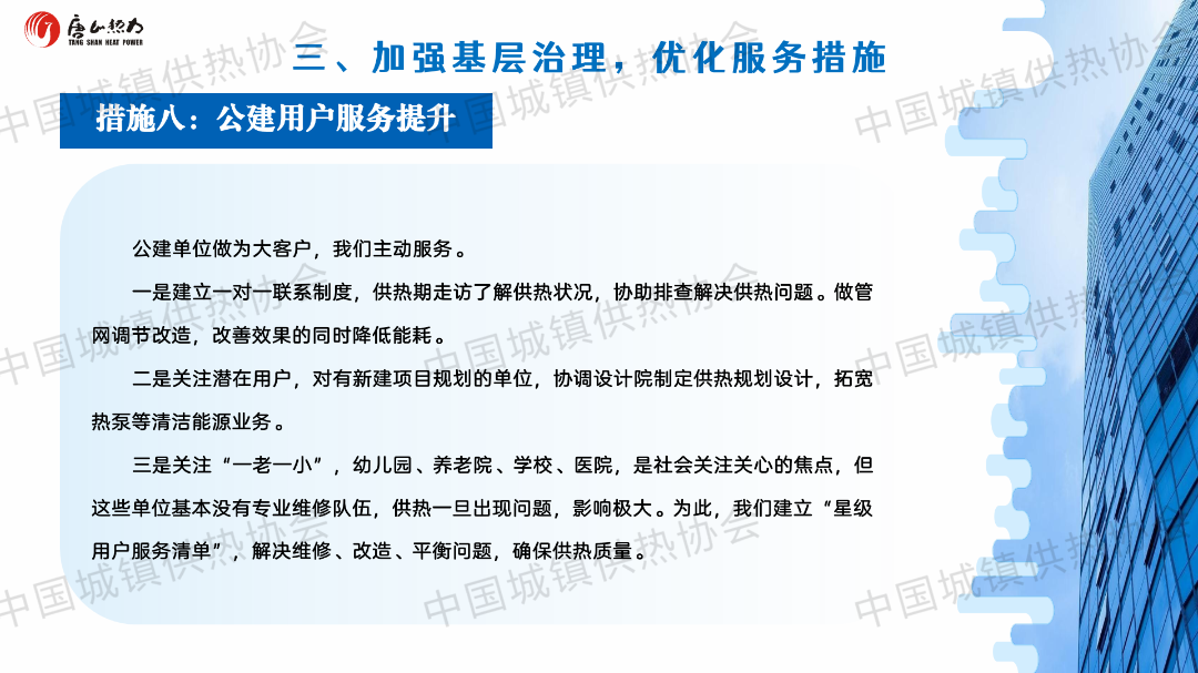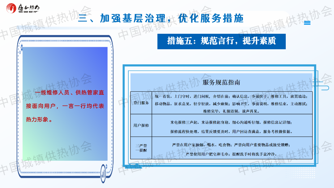 “客戶服務(wù)與供熱企業(yè)管理”分論壇上,陳興旺就此論文作了主題演講。他提出,加強(qiáng)基層治理,暢通報(bào)修渠道,優(yōu)化網(wǎng)點(diǎn)設(shè)置,典型問題重點(diǎn)治理,優(yōu)化服務(wù)措施,是做好供熱服務(wù)的關(guān)鍵。