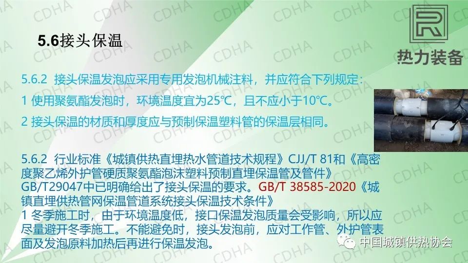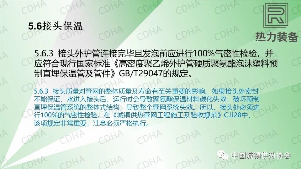 5.6.3 接頭的外護氣密性要達到要求,否則外界水侵入后會影響保溫層及最終保溫效果。因此發(fā)泡之前一定要進行氣密性檢驗。