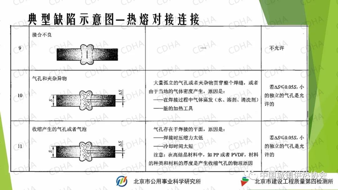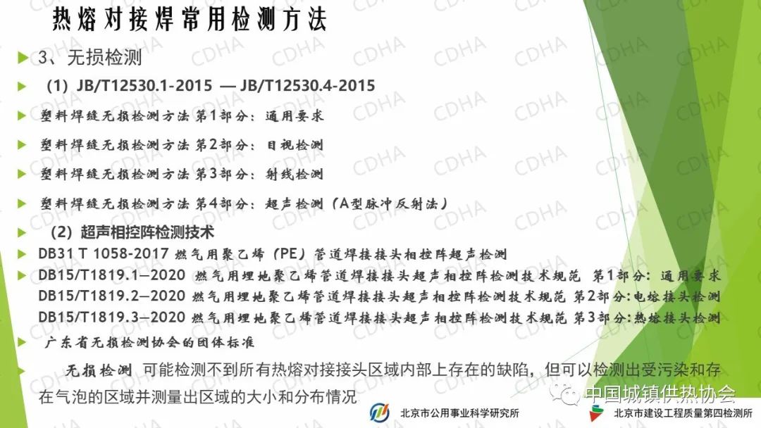 無損檢測可能檢測不到所有熱熔對接接頭區(qū)域內(nèi)部上存在的缺陷,但可以檢測出受污染和存在氣泡的區(qū)域并測量出區(qū)域的大小和分布情況。