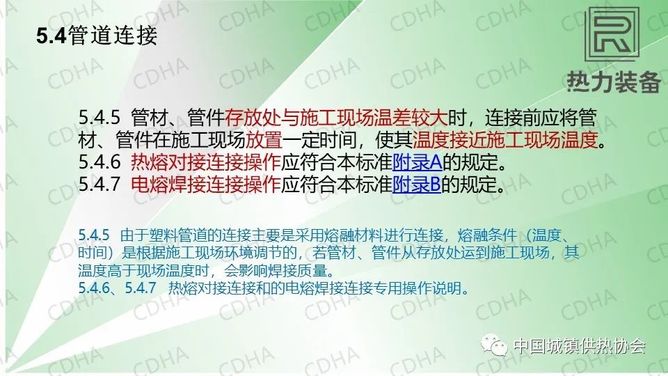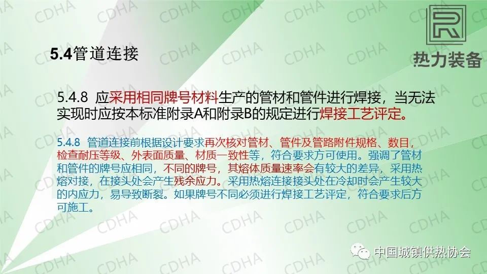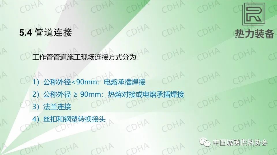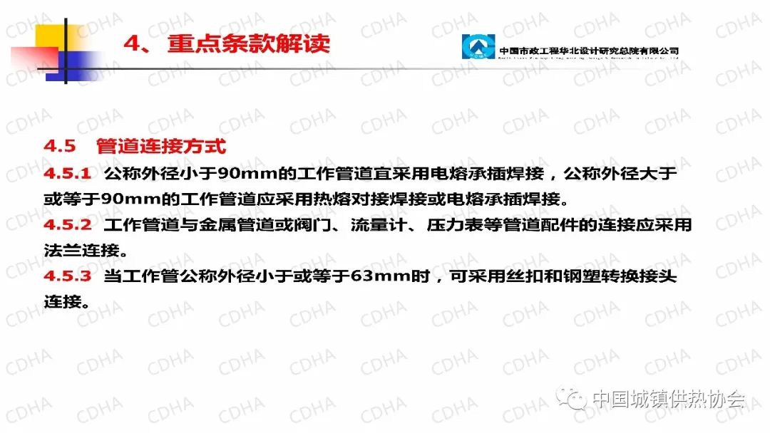 4.5.3因為熱達到一定溫度后會收縮,和排水和燃氣都區(qū)別,為安全起見,這里特意提出大口徑管道不允許使用鋼塑轉(zhuǎn)換接頭。