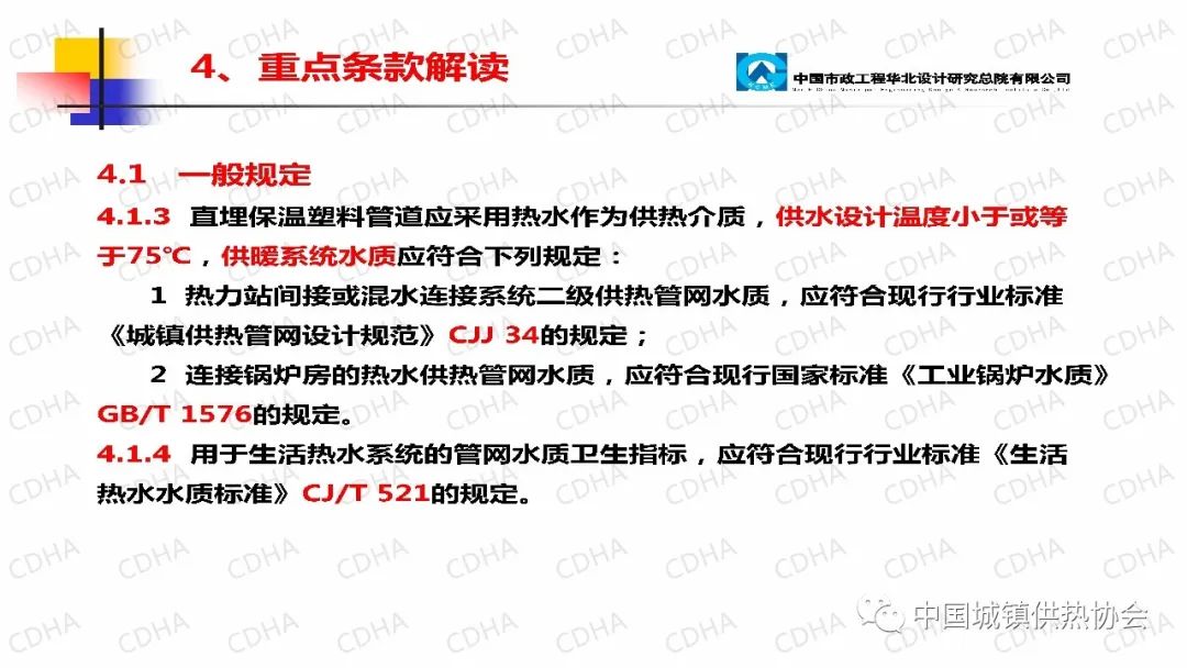 4.1.3規(guī)定中特意強調(diào)直埋保溫塑料管道應采用熱水為供熱介質(zhì),不能使用蒸汽,供水設計溫度小于或等于75℃,供暖系統(tǒng)水質(zhì)應符合下列規(guī)定: