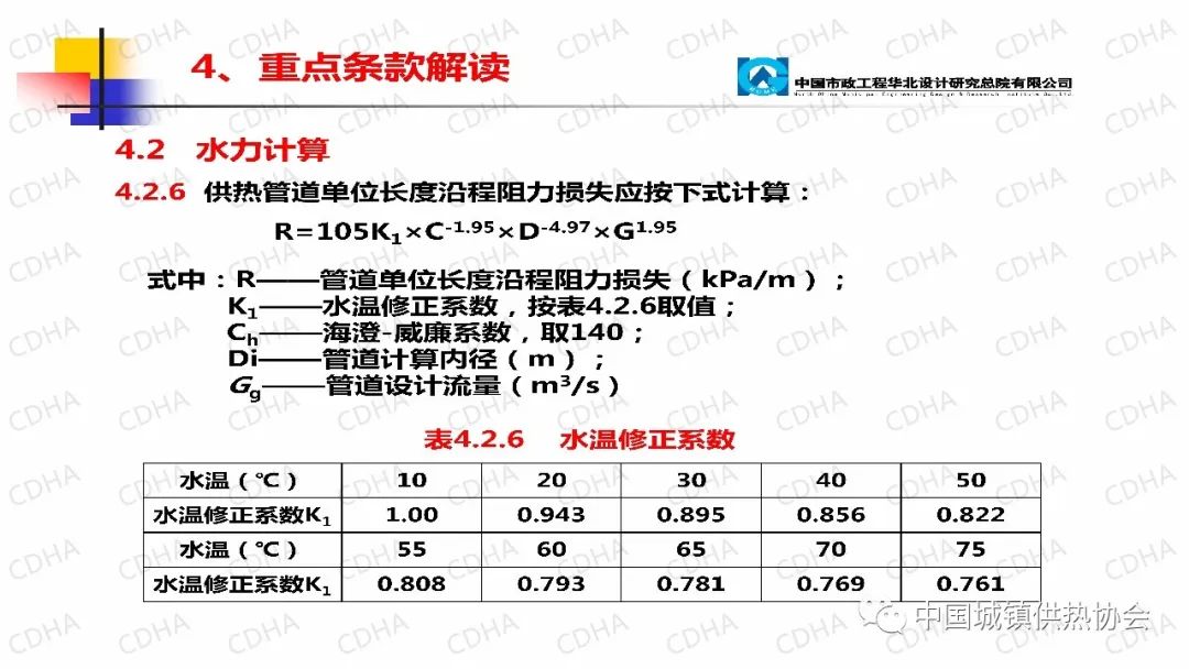 水力計算中供熱管道單位長度沿程阻力損失按這個公式計算,阻力損失包括管道計算內(nèi)徑、管道設計流量、威廉系數(shù)等,主要原因是供熱行業(yè)教科書、手冊都沒有用這個海澄·威廉的公式計算方式,給排水行業(yè)都用的這個公式。