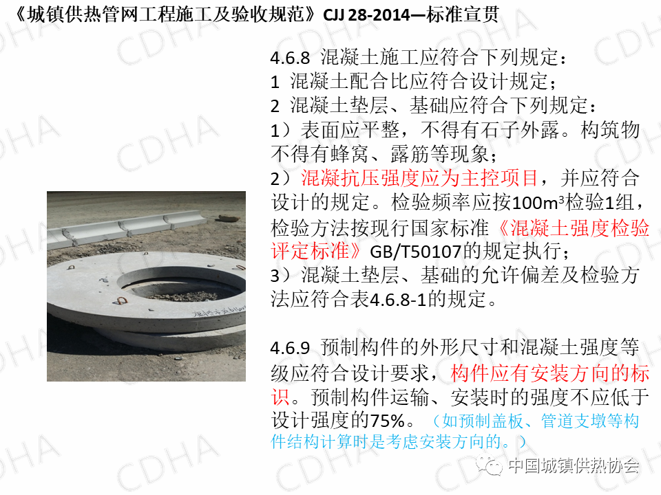 4.6.9預(yù)制構(gòu)件安裝的時(shí)候一定要有安裝方向的標(biāo)識(shí)、方向。因?yàn)椴还苁蔷业?、溝槽的,設(shè)計(jì)單位都會(huì)根據(jù)它的跨度和方向,考慮它的受力支點(diǎn)的不同。而且有的預(yù)制構(gòu)件,像管溝里的滑動(dòng)支墩,也是預(yù)制構(gòu)架,它也有方向問(wèn)題,當(dāng)設(shè)計(jì)的時(shí)候它考慮承載力,還有一個(gè)方向性,所以在預(yù)制構(gòu)件的時(shí)候,一定要有一個(gè)安裝標(biāo)識(shí)方向。