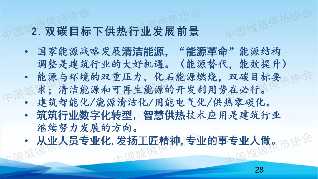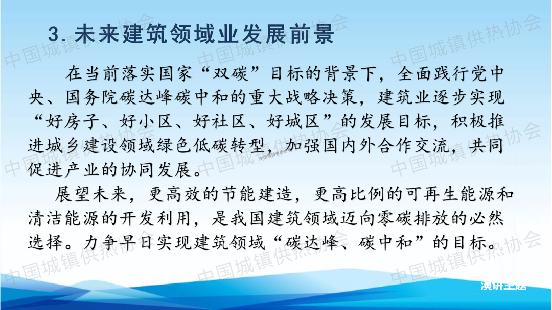 中國建筑節(jié)能協(xié)會副會長,北京建筑大學教授、博導李德英從智慧供熱系統(tǒng)能效提升技術、供能系統(tǒng)普遍存在的問題分析、集中供熱管網輸配系統(tǒng)運行調節(jié)以及我國建筑領域綠色低碳轉型發(fā)展四個方面作了題為“智慧供暖系統(tǒng)熱量調節(jié)法與數(shù)字化調控技術”的主題演講??偨Y提出,未來更高效的節(jié)能建造,更高比例的可再生能源和清潔能源的開發(fā)利用,是我國建筑領域邁向零碳排放的必然選擇。智慧供熱技術應用是建筑行業(yè)繼續(xù)努力發(fā)展的方向。