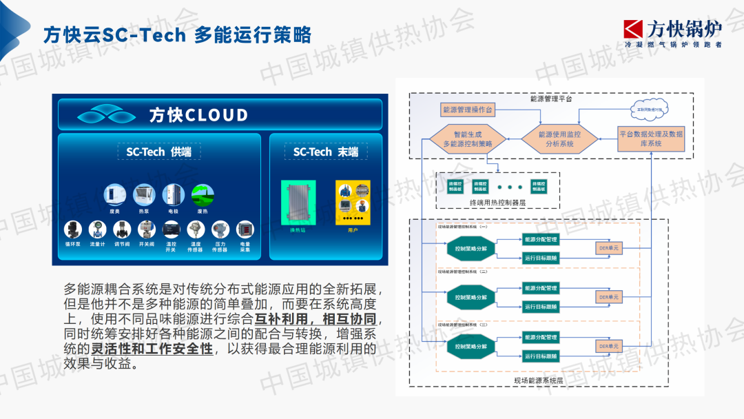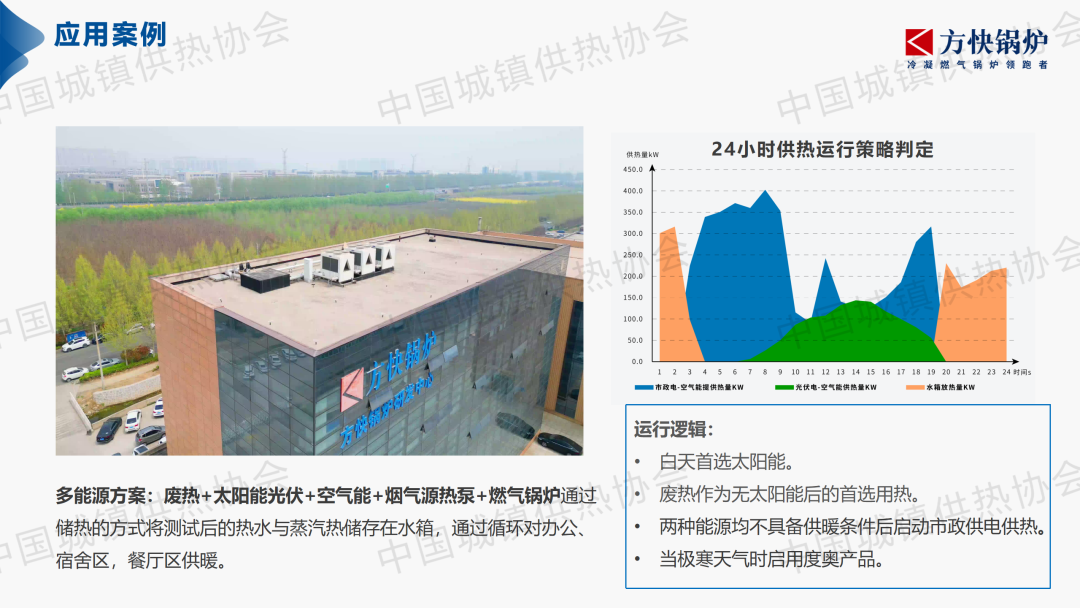 方快鍋爐有限公司研發(fā)總監(jiān)盧潔作了題為“圍繞雙碳節(jié)能的多能供暖解決方案”的精彩演講,介紹了多能耦合系統(tǒng)熱源、不同熱源的特點(diǎn)對(duì)比、多能耦合系統(tǒng)方案以及相關(guān)應(yīng)用案例。