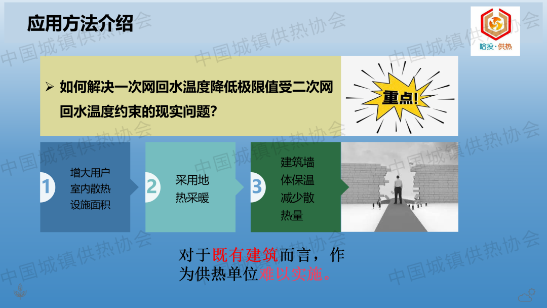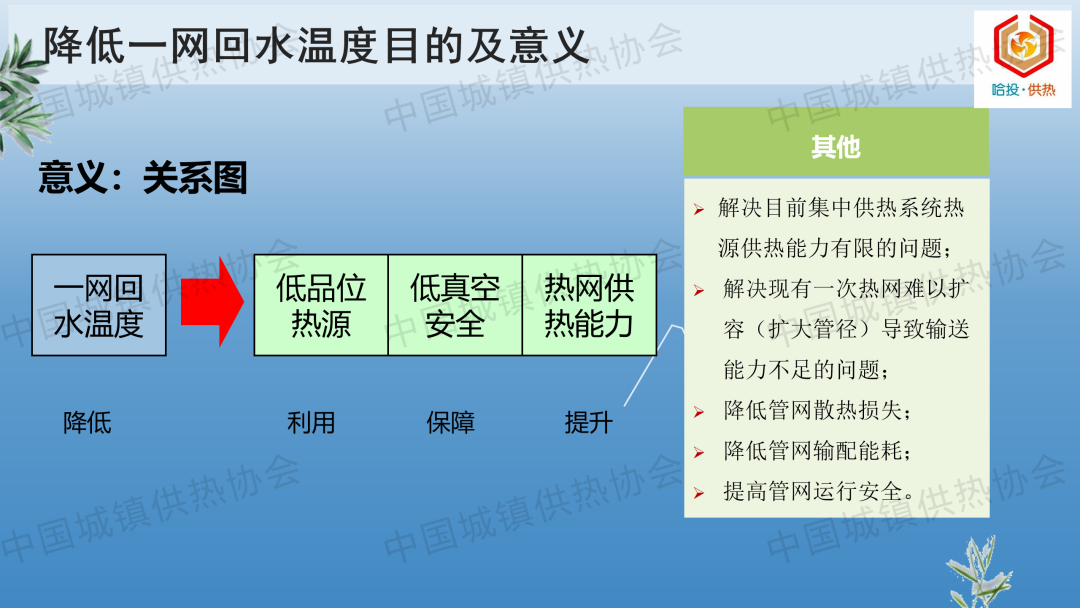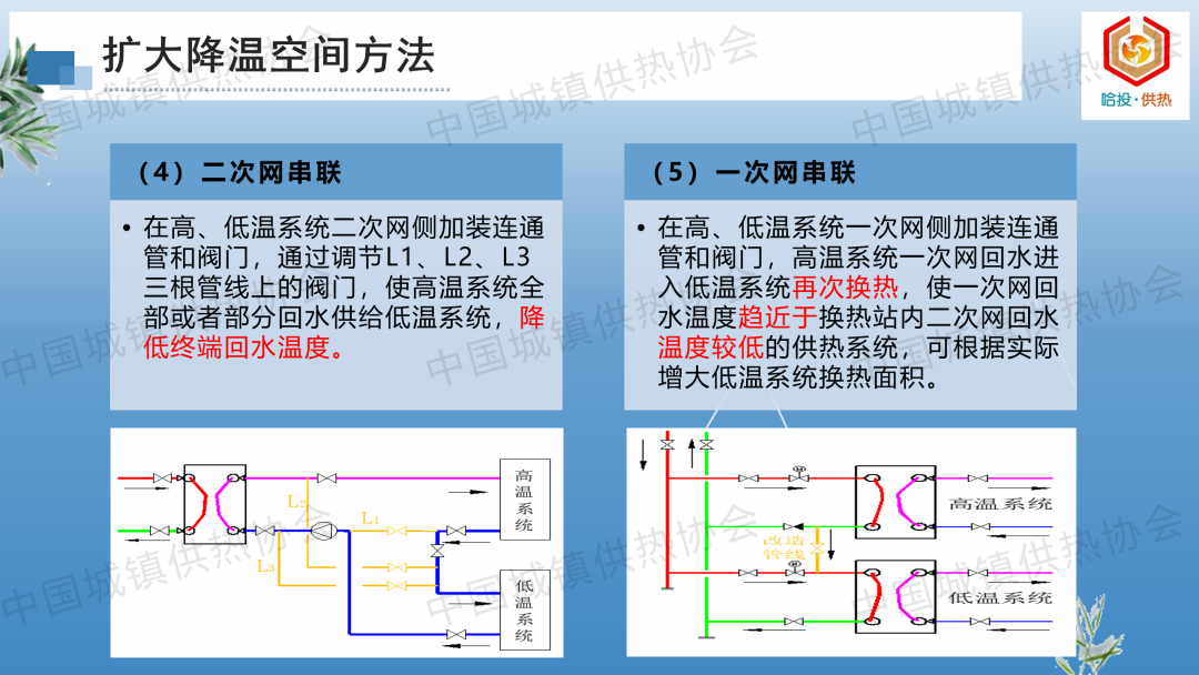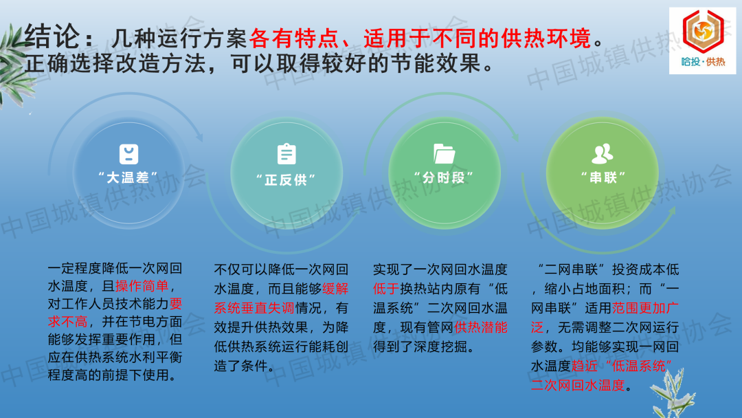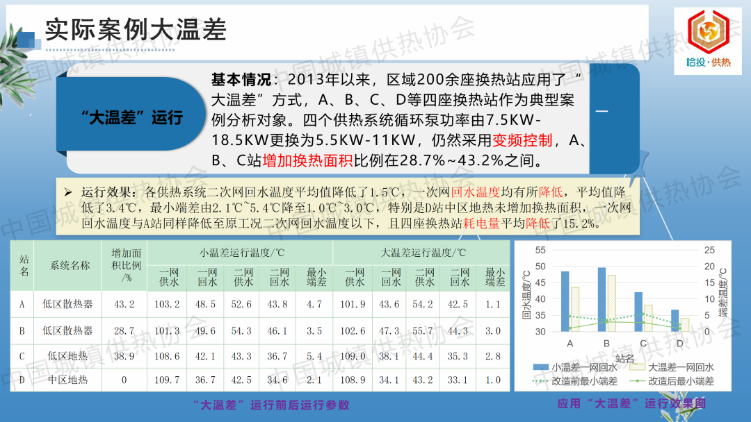 哈爾濱哈投投資股份有限公司供熱公司高帥投稿的《進一步降低換熱站一次網回水溫度方法的應用》一文榮獲第七屆中國供熱學術年會論文金獎。高帥介紹了項目的研究背景及理論分析,大溫差、正反供、分時段、二次網串聯、一次網串聯等擴大降溫空間方法,以及不同方法的實際案例,總結提出幾種運行方案各有特點、適用于不同的供熱環(huán)境。正確選擇改造方法,可以取得較好的節(jié)能效果。