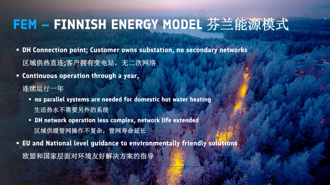 芬蘭國(guó)家商務(wù)促進(jìn)局高級(jí)商務(wù)官員劉耀作了關(guān)于“芬蘭零碳供熱技術(shù)路徑與供熱保障”的主題演講。介紹了芬蘭的能源模式、2024年度供熱報(bào)告以及中芬能源領(lǐng)域合作案例。