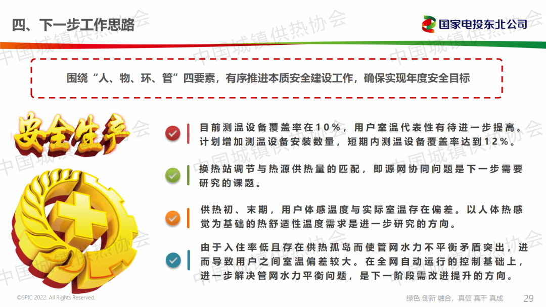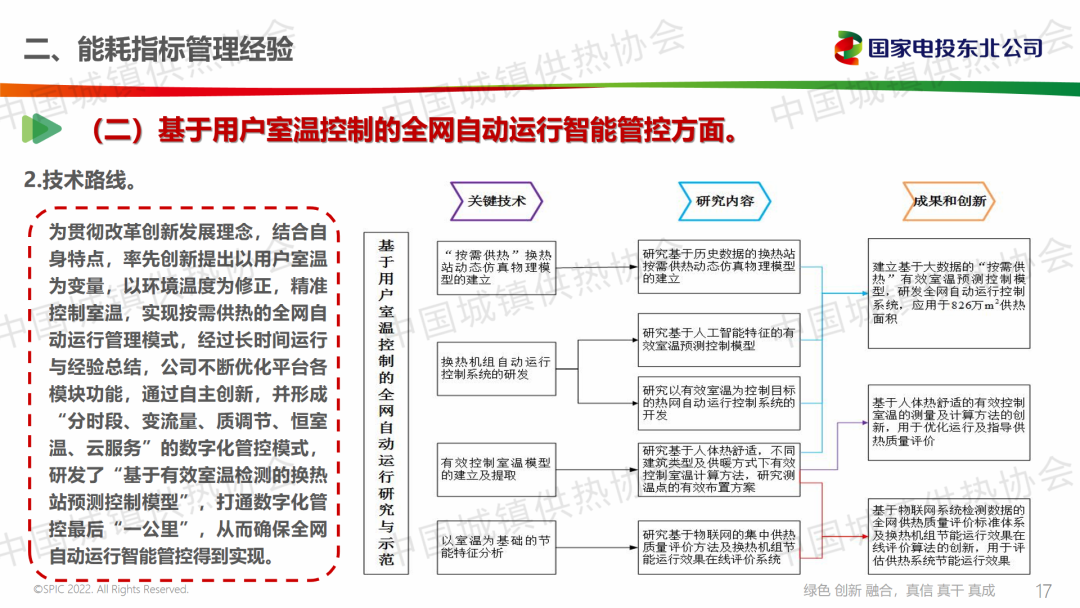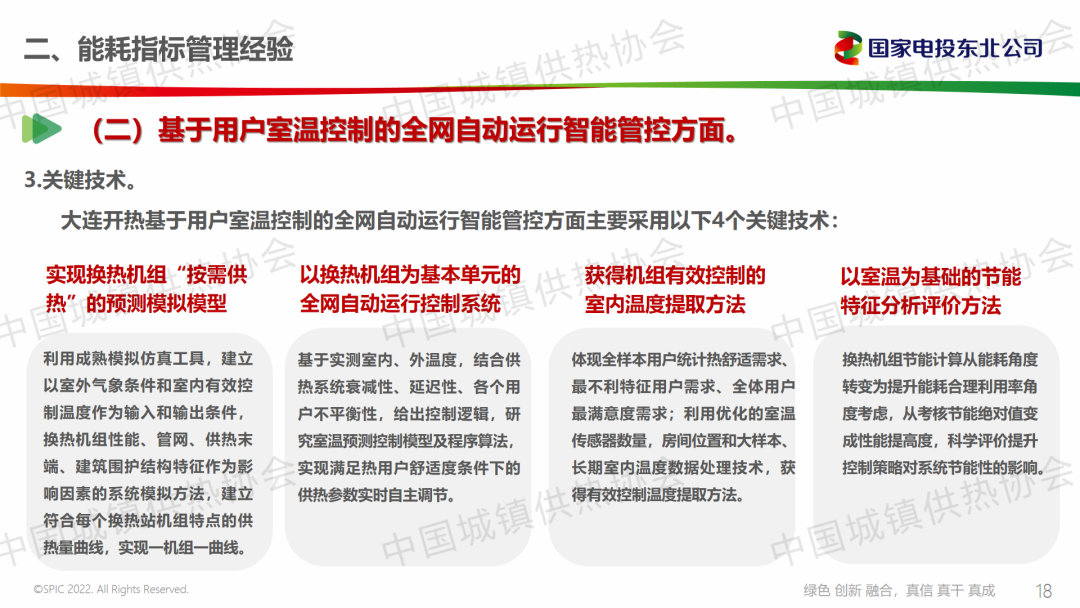 國家電投集團東北電力有限公司大連開熱分公司副總經(jīng)理常青從能耗指標管理經(jīng)驗、2023-2024供暖期能耗指標完成情況及近年來相關成果、下一步工作思路三個方面分享了公司降低供熱能耗的經(jīng)驗,總結提出,源網(wǎng)協(xié)同問題是下一步需要研究的課題。以人體熱感覺為基礎的熱舒適性溫度需求是進一步研究的方向。在全網(wǎng)自動運行的控制基礎上,進一步解決管網(wǎng)水力平衡問題,是下一階段需改進提升的方向。