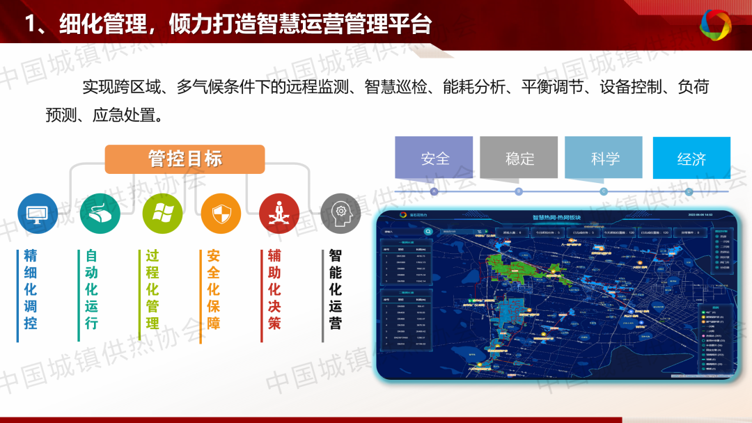 寶石花同方能源科技有限公司生產(chǎn)指揮中心總經(jīng)理史向輝作了題為“構(gòu)建跨區(qū)域、多氣候、多熱源條件下的智慧供熱管理體系”的精彩演講,分享了企業(yè)在實(shí)現(xiàn)能耗管控方面的經(jīng)驗(yàn)與做法,介紹了企業(yè)智慧運(yùn)營管理平臺(tái)的系統(tǒng)架構(gòu)、特點(diǎn)、應(yīng)用成果,能耗指標(biāo)管控體系指標(biāo)的制定、管理以及考評與獎(jiǎng)勵(lì)以及員工節(jié)能意識(shí)和能力的培養(yǎng)。