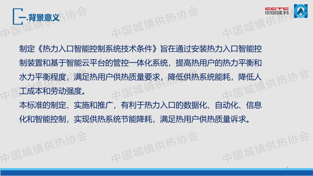 “供熱系統(tǒng)智能運(yùn)行與調(diào)控”主題論壇上,華北設(shè)計(jì)研究總院有限公司熱力工程技術(shù)中心主任苗慶偉對(duì)協(xié)會(huì)團(tuán)體標(biāo)準(zhǔn)T/CDHA12-2022《熱力入口智能控制系統(tǒng)技術(shù)條件》進(jìn)行了宣貫解讀,介紹了標(biāo)準(zhǔn)編制的背景意義和主要內(nèi)容。