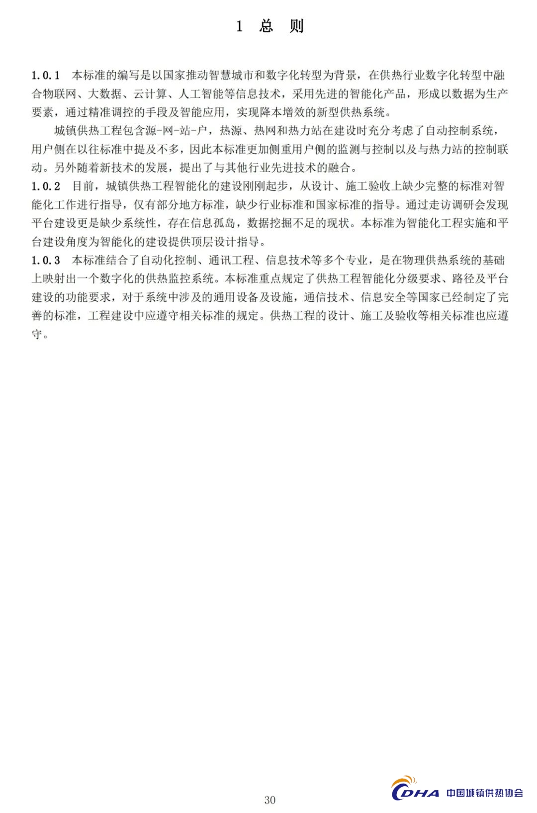 標準適用于新建和改建的城鎮(zhèn)供熱工程智能化系統(tǒng)的設(shè)計、施工驗收及運行維護。城鎮(zhèn)供熱工程智能化系統(tǒng)除應(yīng)執(zhí)行本標準外,尚應(yīng)符合國家現(xiàn)行有關(guān)標準的規(guī)定
