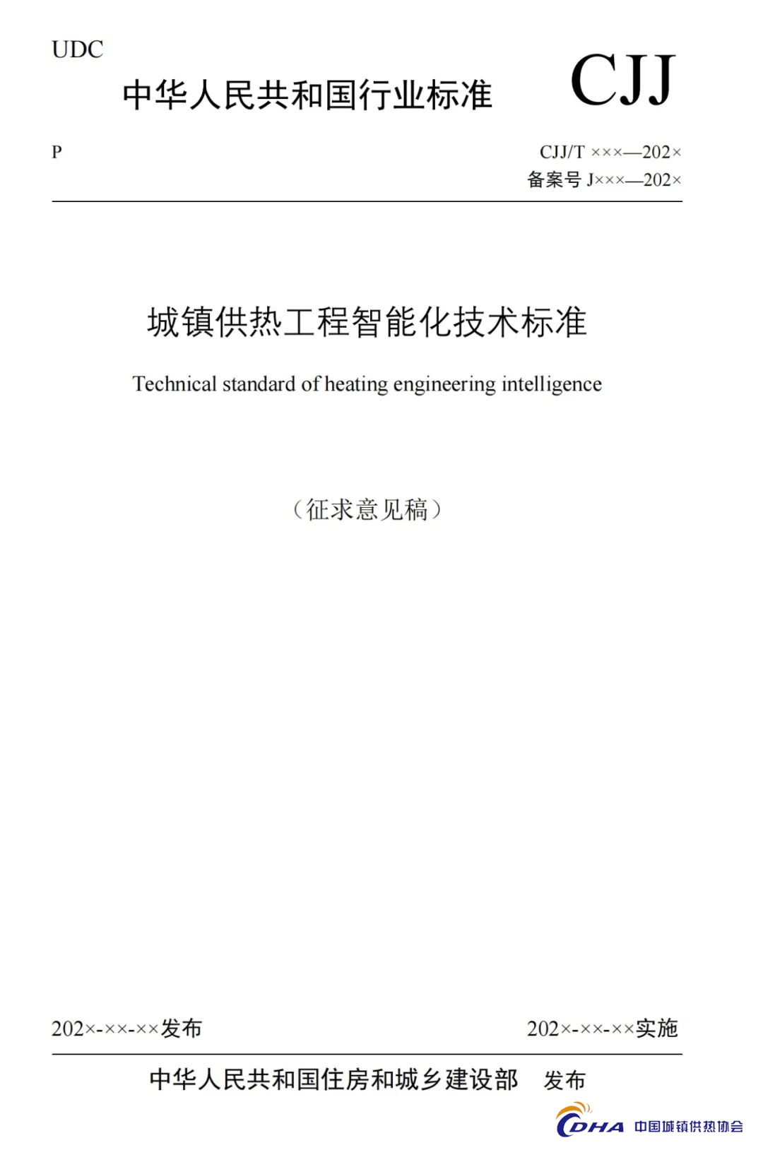 《城鎮(zhèn)供熱工程智能化技術(shù)標準(征求意見稿)》公開征求意見的通知