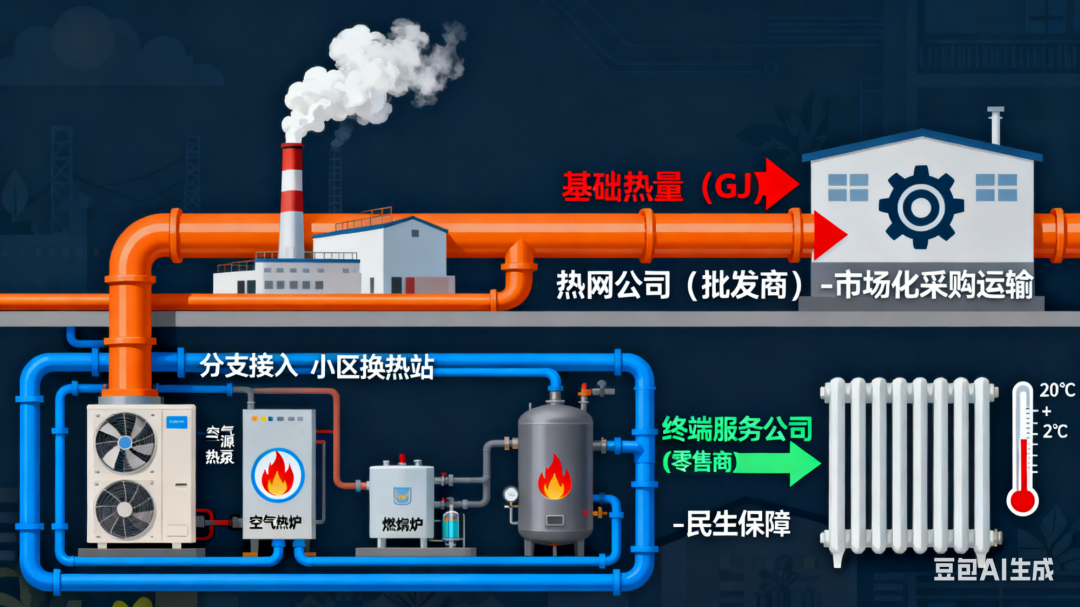 簡單來說,未來可能是:熱網(wǎng)公司負責把“面粉”(基礎熱量)高效運到城市各片區(qū),終端服務公司則根據(jù)每個“家庭”(小區(qū))的需求,把面粉做成可口且溫度剛好的“饅頭”(舒適的室內(nèi)溫暖)。