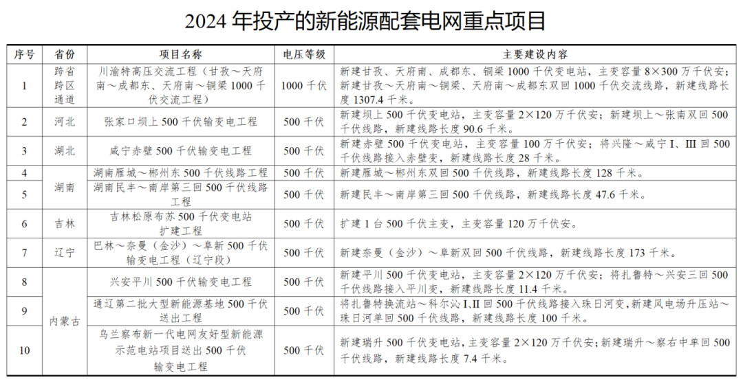 (二)加快項目建設。各級能源主管部門會同電網(wǎng)企業(yè),每年按權(quán)限對已納入規(guī)劃的新能源配套電網(wǎng)項目建立項目清單,在確保安全的前提下加快推進前期、核準和建設工作,電網(wǎng)企業(yè)按季度向能源主管部門報送項目進展情況,同時抄送所在地相應的國家能源局派出機構(gòu)。電網(wǎng)企業(yè)承擔電網(wǎng)工程建設主體責任,要會同發(fā)電企業(yè)統(tǒng)籌確定新能源和配套電網(wǎng)項目的建設投產(chǎn)時序,優(yōu)化投資計劃安排,與項目前期工作進度做好銜接,不得因資金安排不及時影響項目建設。對電網(wǎng)企業(yè)建設有困難或規(guī)劃建設時序不匹配的新能源配套送出工程,允許發(fā)電企業(yè)投資建設,經(jīng)電網(wǎng)企業(yè)與發(fā)電企業(yè)雙方協(xié)商同意后可在適當時機由電網(wǎng)企業(yè)依法依規(guī)進行回購。為做好2024年新能源消納工作,重點推動一批配套電網(wǎng)項目建設(詳見附件1、2)。