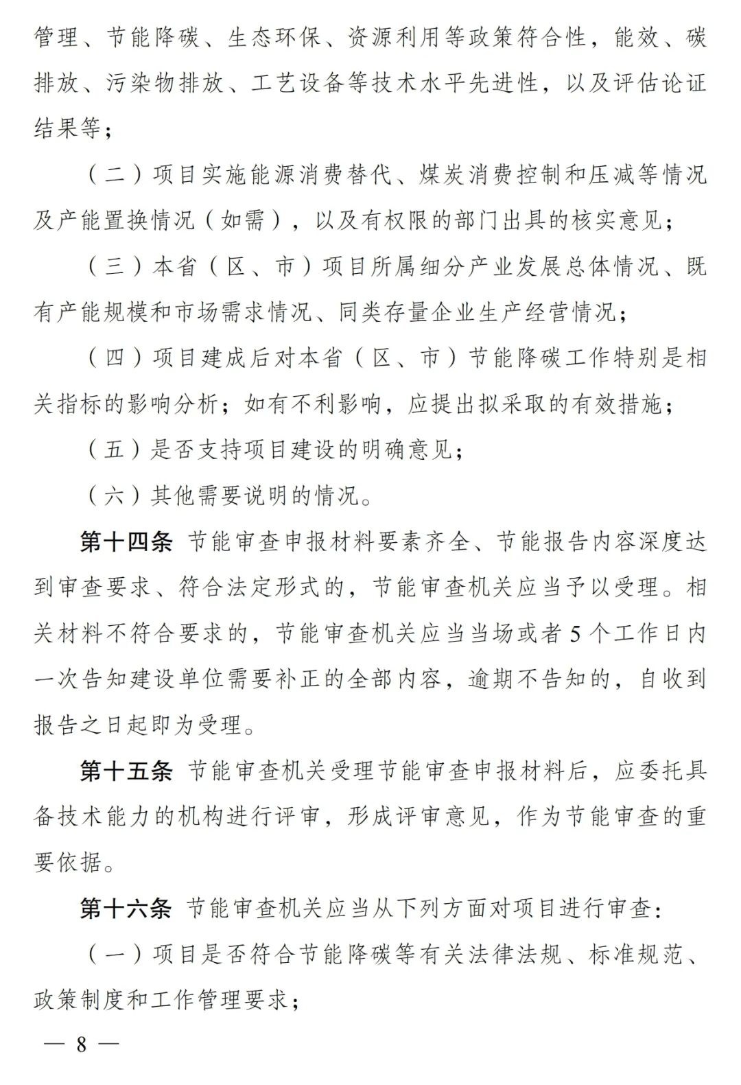 答:去年以來(lái),黨中央、國(guó)務(wù)院對(duì)節(jié)能降碳工作作出一系列新的部署安排。黨的二十屆三中全會(huì)提出“建立能耗雙控向碳排放雙控全面轉(zhuǎn)型新機(jī)制”。國(guó)務(wù)院印發(fā)《2024—2025年節(jié)能降碳行動(dòng)方案》,要求“建立重大項(xiàng)目節(jié)能審查權(quán)限動(dòng)態(tài)調(diào)整機(jī)制,研究按機(jī)制上收個(gè)別重點(diǎn)行業(yè)特大型項(xiàng)目節(jié)能審查權(quán)限,加強(qiáng)節(jié)能審查事中事后監(jiān)管;將碳排放評(píng)價(jià)有關(guān)要求納入固定資產(chǎn)投資項(xiàng)目節(jié)能審查,對(duì)項(xiàng)目用能和碳排放情況開(kāi)展綜合評(píng)價(jià)”;國(guó)務(wù)院辦公廳印發(fā)《加快構(gòu)建碳排放雙控制度體系工作方案》,提出“將碳排放評(píng)價(jià)有關(guān)要求納入固定資產(chǎn)投資項(xiàng)目節(jié)能審查,對(duì)項(xiàng)目用能和碳排放情況開(kāi)展綜合評(píng)價(jià)”,這都對(duì)節(jié)能審查工作提出了新的更高要求。