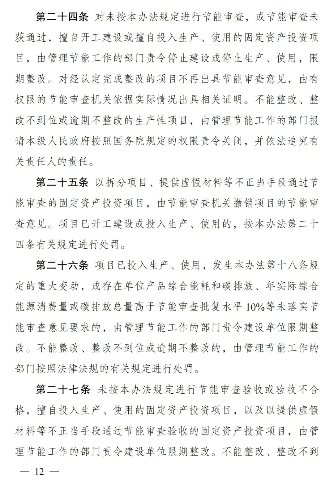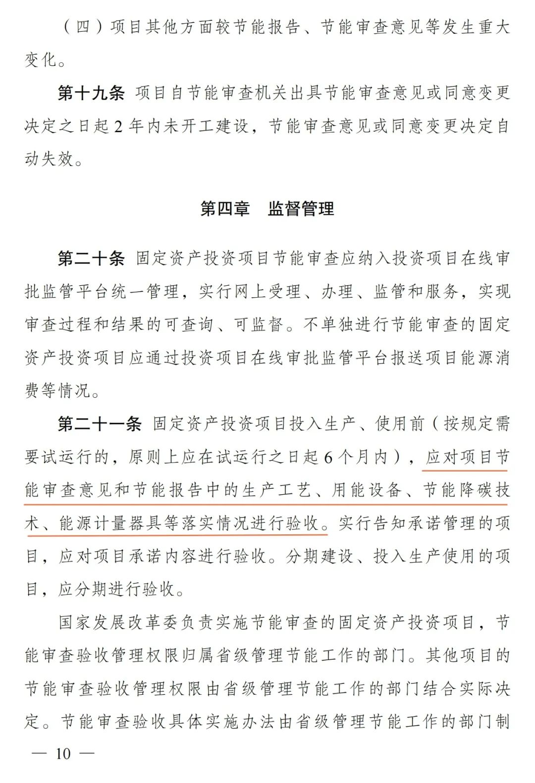 三是完善節(jié)能審查事中事后管理有關(guān)規(guī)定。要求管理節(jié)能工作的部門(mén)加強(qiáng)對(duì)節(jié)能審查實(shí)施情況的監(jiān)督管理,明確項(xiàng)目發(fā)生重大變動(dòng)、未落實(shí)節(jié)能審查意見(jiàn)等具體情形和處置方式,強(qiáng)化項(xiàng)目節(jié)能審查驗(yàn)收管理要求,完善法律責(zé)任相關(guān)規(guī)定。